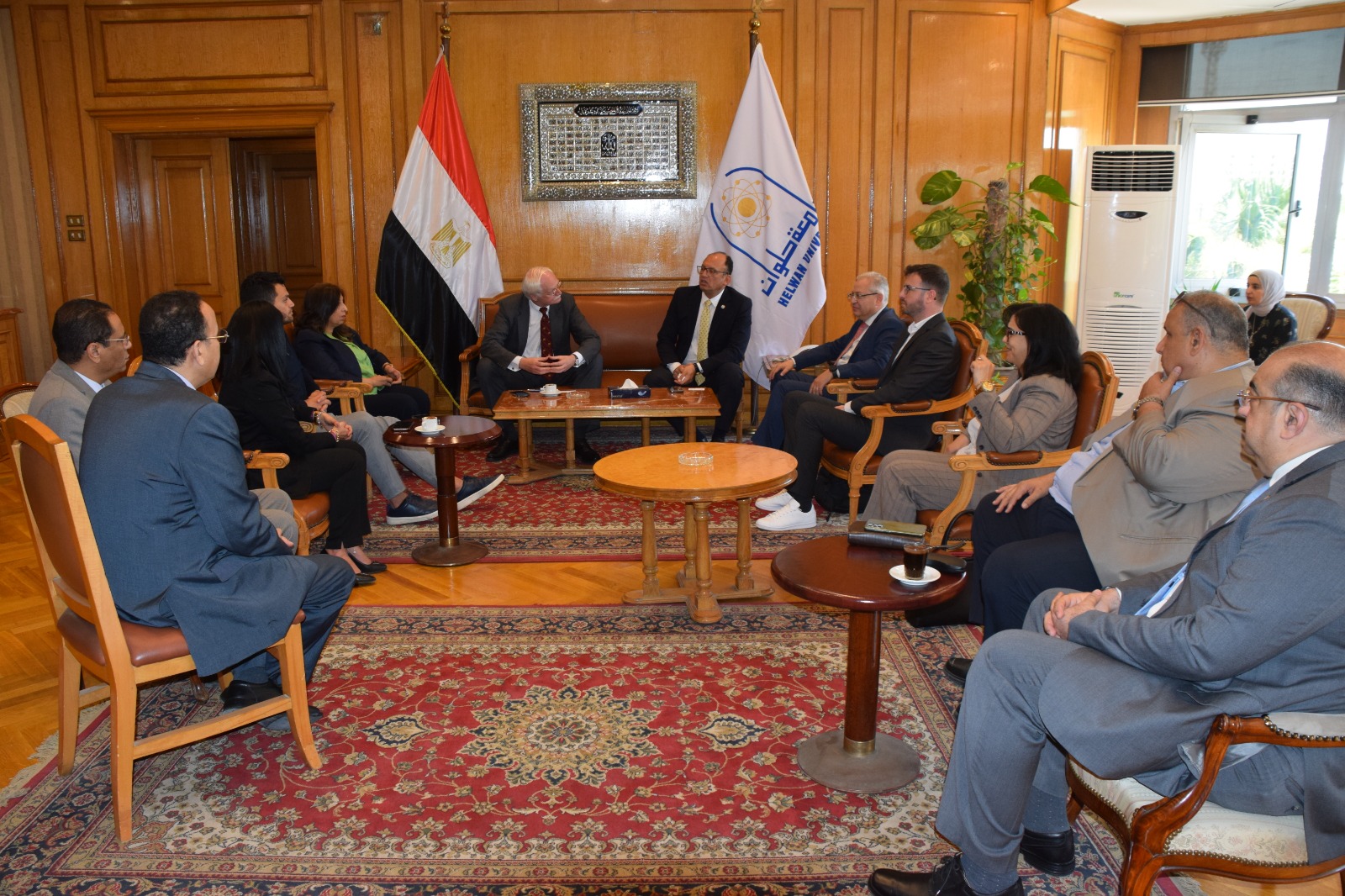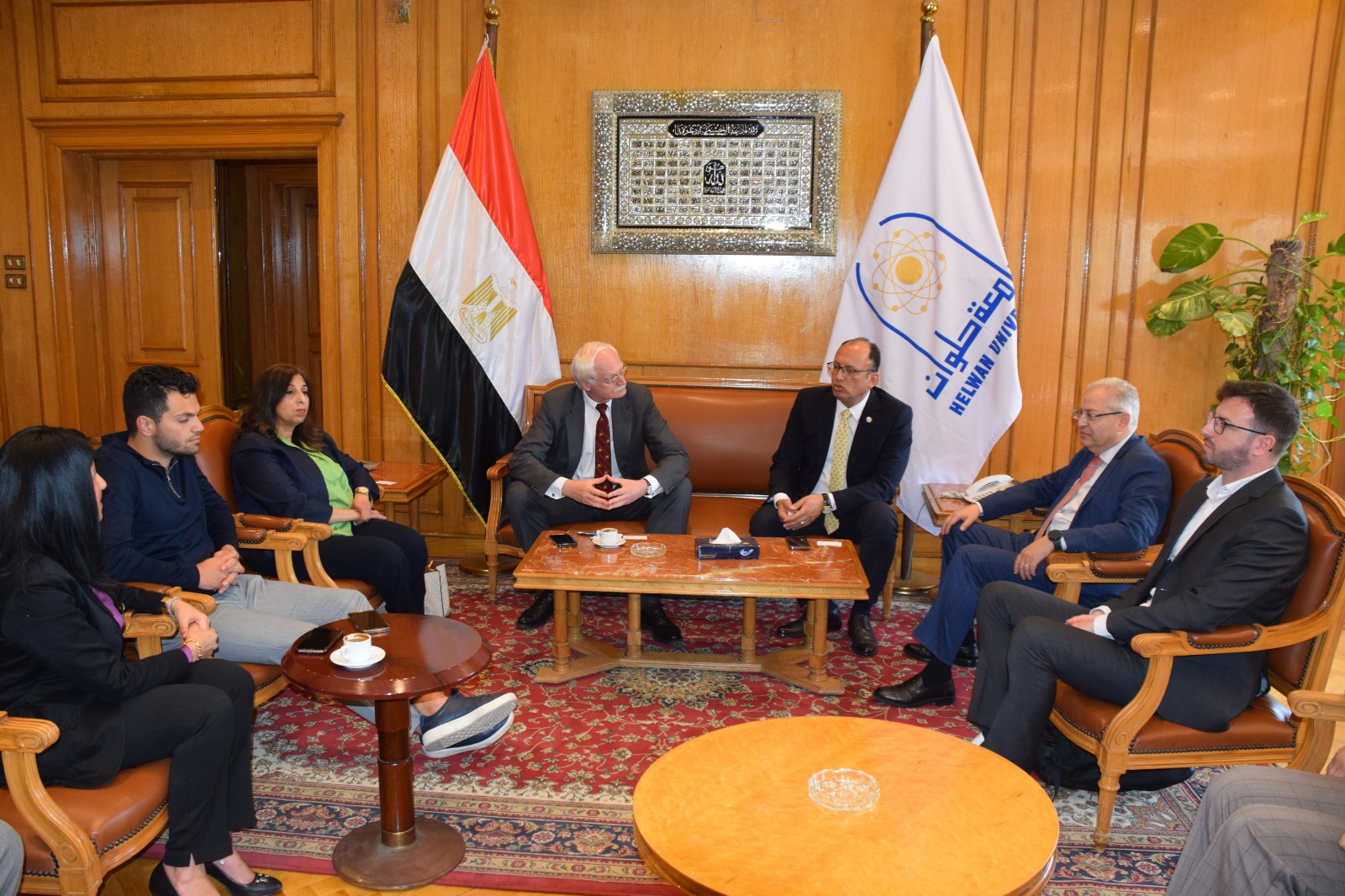 جامعة حلوان تستقبل وفد من جامعة أوروبا الألمانية وشبكة المؤسسات التعليمية الدولية