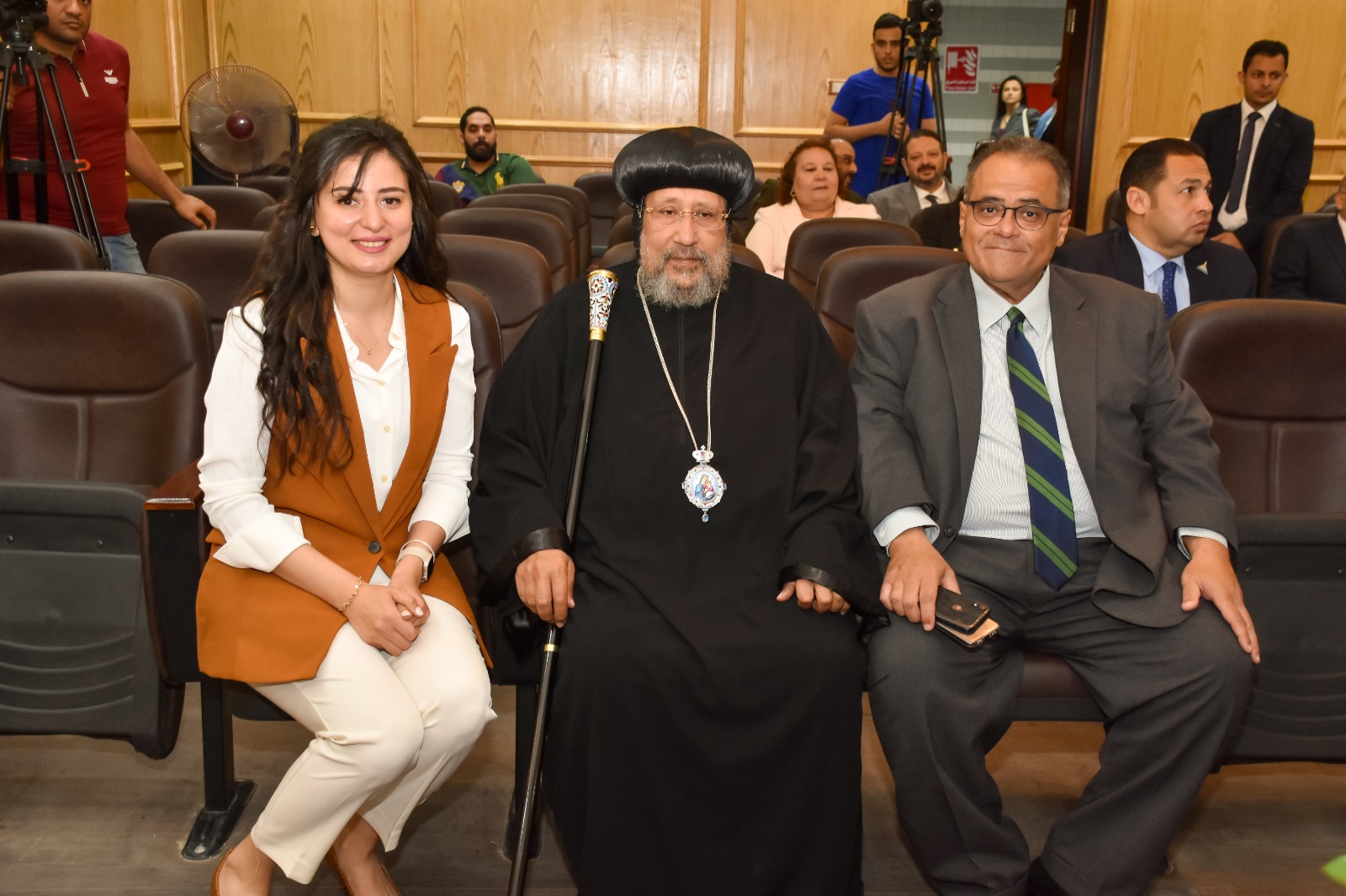 استقبل الدكتور عبدالفتاح سعود نائب رئيس جامعة عين شمس لشئون التعليم والطلاب، نيافة الأسقف الأنبا أرميا مدير المركز الثقافي القبطي الأرثوذكسي، في رحاب كلية الصيدلة جامعة عين شمس، وذلك تحت رعاية الدكتور محمود المتيني رئيس جامعة عين شمس، والدكتورة أماني أسامة كامل عميد الكلية، والدكتورة ريحاب عثمان وكيل الكلية لشئون التعليم والطلاب، والدكتور خالد أبو شنب وكيل الكلية لشئون الدراسات العليا والبحوث، والدكتورة رولا ميلاد وكيل الكلية لشئون خدمة المجتمع وتنمية البيئة، والدكتورة رانيا حتحوت رئيس قسم الصيدلانيات.