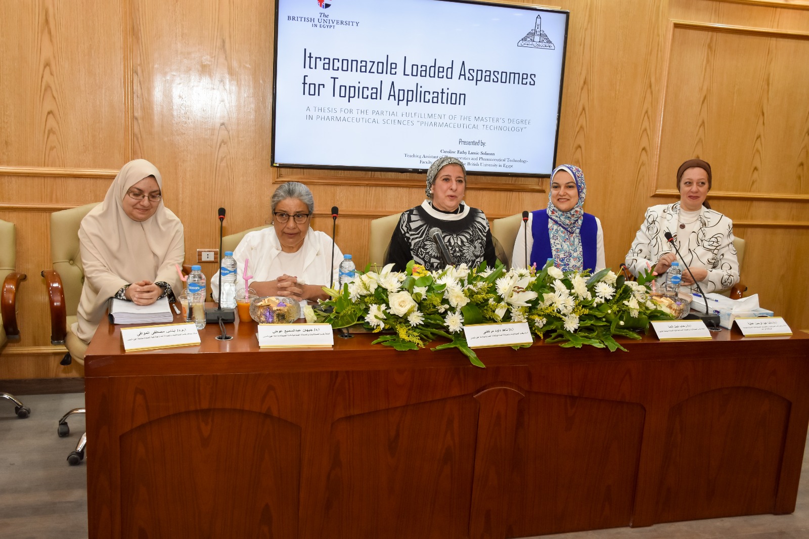 حيث شهد نيافة الأسقف الأنبا أرميا مدير المركز الثقافي القبطي الأرثوذكسي، مناقشة رسالة الماجستير المقدمة من الصيدلانية كارولين سليمان المعيدة بقسم الصيدلانيات والتكنولوجيا الصيدلية بكلية الصيدلة بالجامعة البريطانية في مصر، تحت عنوان "الاسبازومات المحملة بالايتراكونازول للاستخدام السطحي"، وعضوية لجنة الإشراف لكل من الدكتورة ناهد داوود مرتضی أستاذ الصيدلانيات والصيدلة الصناعية بكلية الصيدلة جامعة عين شمس ورئيس اللجنة، والدكتورة داليا عبدالرحمن عطية أستاذ ورئيس قسم الصيدلانيات وتكنولوجيا الصيدلة بكلية الصيدلة بالجامعة البريطانية في مصر، والدكتورة إيناس مصطفى الموافي أستاذ مساعد الصيدلانيات والصيدلة الصناعية بكلية الصيدلة جامعة عين شمس.