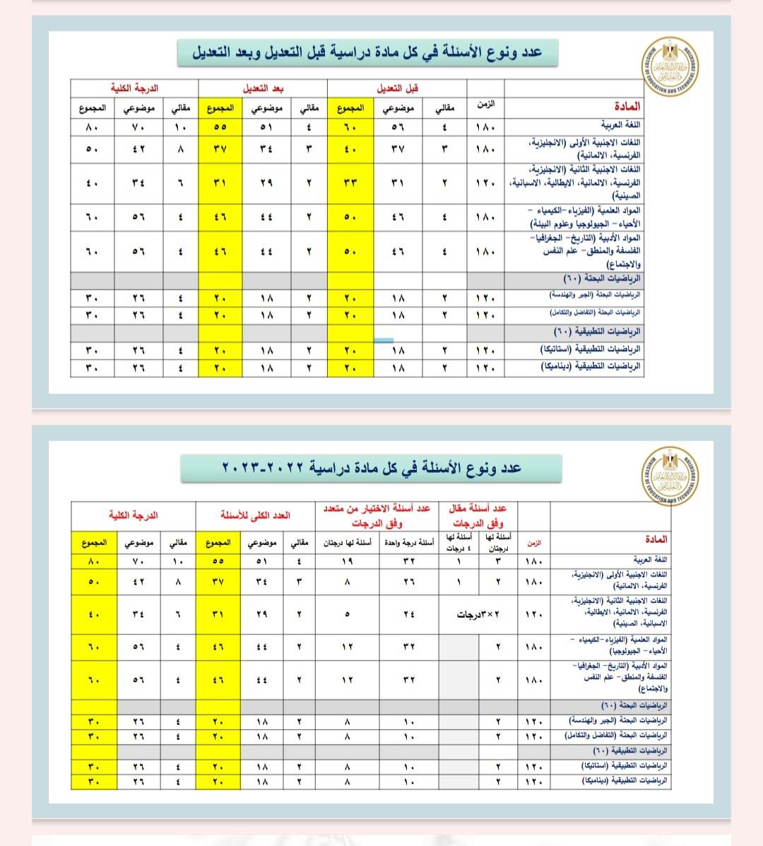 ويمكن الإطلاع على تفاصيل وعدد الأسئلة في جميع مواد امتحانات الثانوية العامة للعام الدراسي الجاري 2022/2023 من الصور التالية: