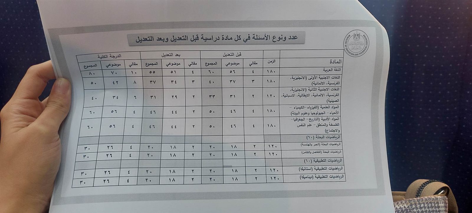أعلن الدكتور رضا حجازي وزير التربية والتعليم والتعليم الفني، عدد ونوع الأسئلة في كل مادة دراسية قبل التعديل وبعد التعديل.