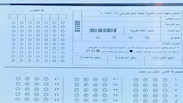 شكل نموذج البابل شيت في امتحانات الثانوية العامة 2023