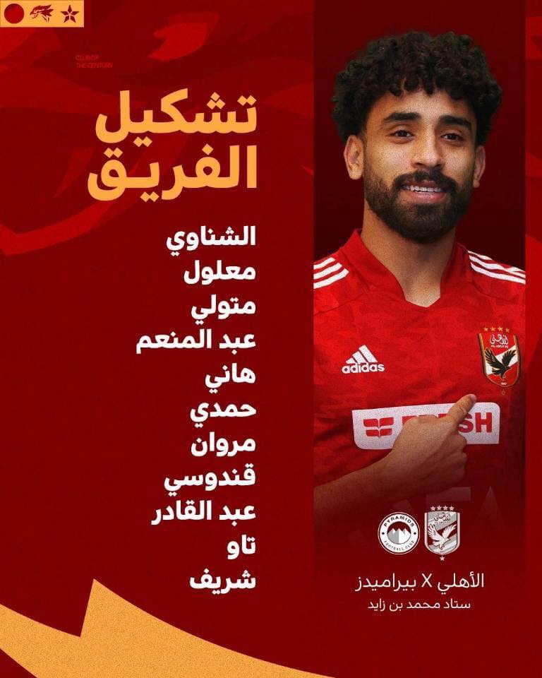 أعلن المدرب السويسري مارسيل كولر المدير الفني للفريق الأول لكرة القدم بالنادي الأهلي، تشكيل الفريق لمباراة بيراميدز بنهائي كأس السوبر.
