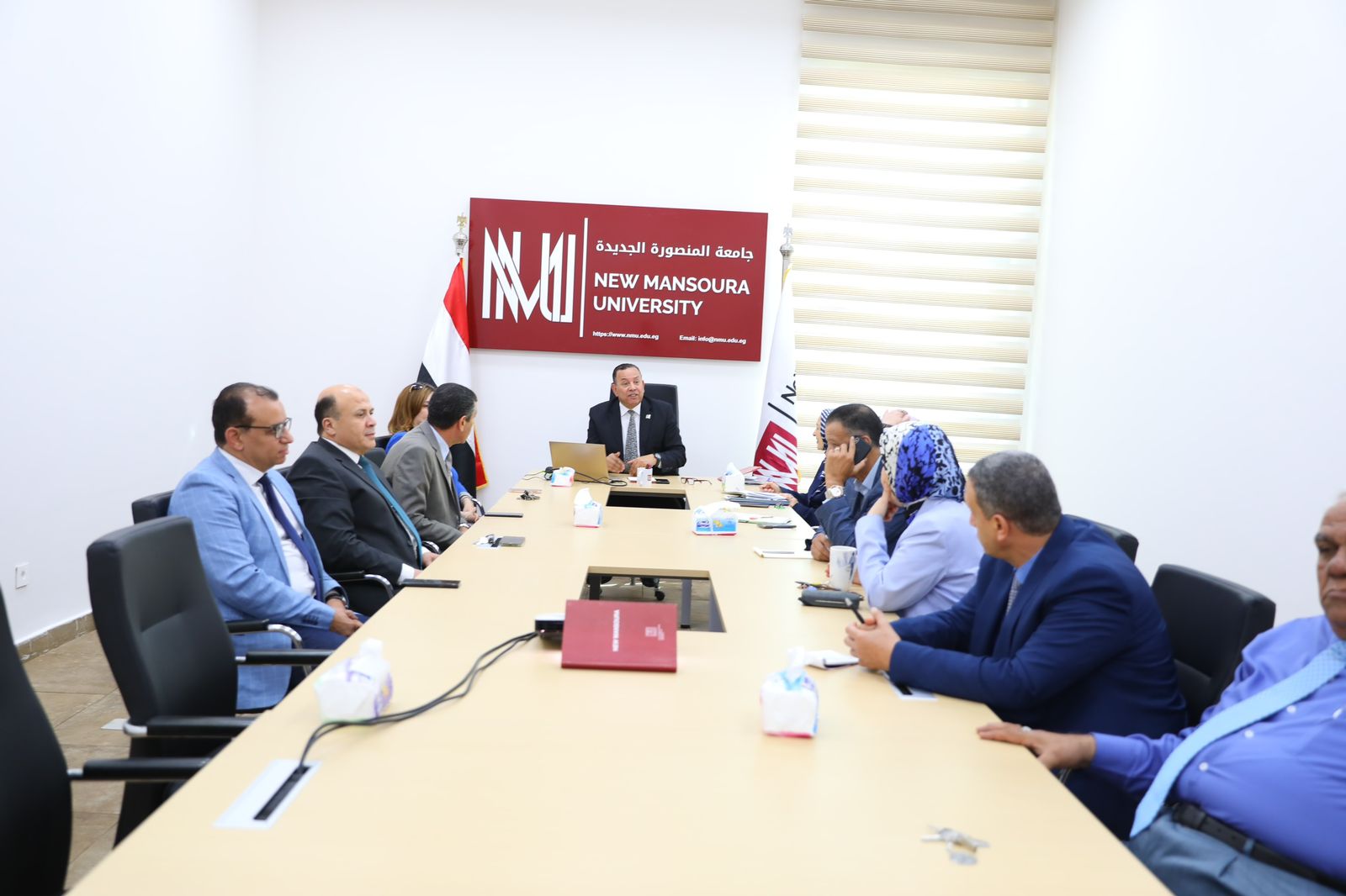 رئيس جامعة المنصورة الجديدة يلتقي قيادات الجامعة لمتابعة أعمال القبول للعام الجديد