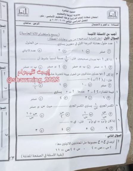 نشر أسئلة وأجوبة امتحان الجبر للشهادة الإعدادية القاهرة