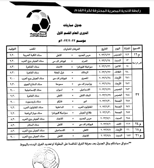 كما جرى تعديل موعد مباراة فاركو وسموحة، المقرر إقامتها الثلاثاء المقبل، لتقام فى التاسعة والنصف مساءً بدلًا من السابعة مساءً.