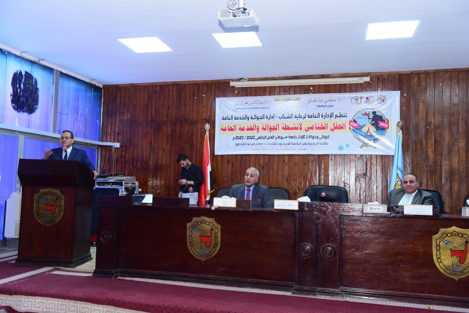رئيس جامعة سوهاج يشهد الحفل الختامي لأنشطة الجوالة والخدمة العامة ويكرم الفائزين