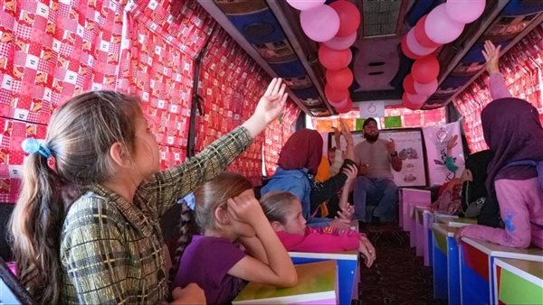 وفي محاولة لتعليم الأطفال تشقّ حافلات ملوّنة تحولت إلى قاعات تدريس متنقلة طريقها بين مخيمات للنازحين، موفرة لأطفال دمّر الزلزال مدارسهم قبل أكثر من ثلاثة أشهر، حصصًا تعليمية ودعمًا نفسيًا.