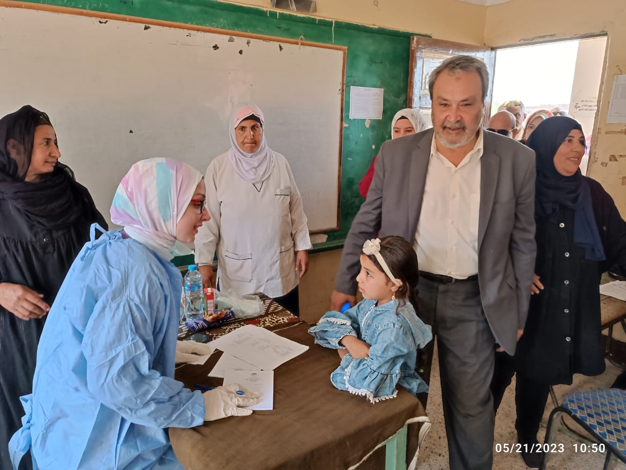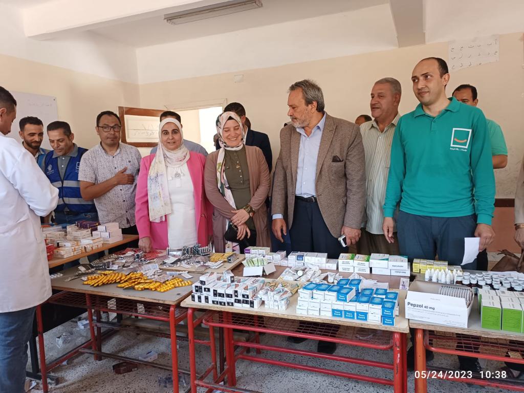 تم توقيع الكشف الطبي فى التخصصات التالية "202 في جراحة المخ والأعصاب، و334 حالة في عيادة طب الأطفال، و445 بجراحة العظام، و327 بعيادة الأمراض الجلدية، و332 بأمراض الباطنة، و162 بعيادة جراحة المسالك البولية، و339 بعيادة الأنف والأذن والحنجرة، و69 بعيادة الجراحة العامة، و156 بعيادة الأمراض الصدرية، و109 بالنفسية والعصبية، و450 بعيادة طب وجراحة العيون، و73 بعيادة القلب والأوعية، و149 بعيادة التحاليل، و128 بعيادة تنظيم الأسرة، و17 بعيادة صحة المرأة.