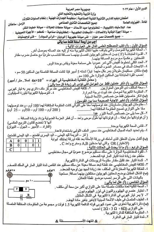 اشتكى عدد من طلاب الدبلومات الفنية الصناعية من صعوبة امتحان الفيزياء لدبلوم المدارس الثانوية الصناعية (منظومة الجدارات المهنية) نظام الثلاث سنوات.