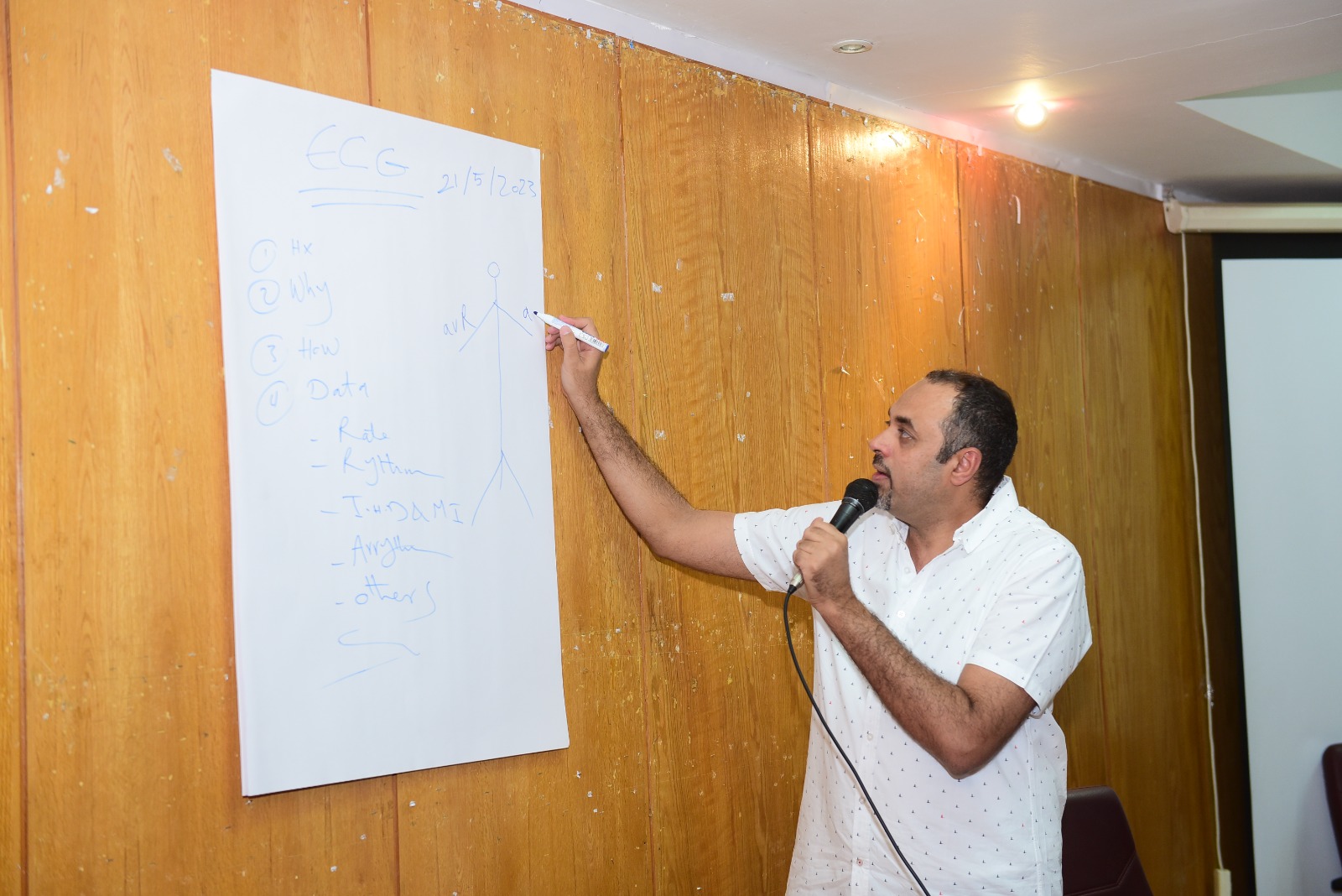 وذكر الدكتور علاء غالب، أستاذ أمراض القلب والمحاضر بالدورة التدريبية، أنه تم تدريب الطلاب على كيفية التعامل مع الحالات القلبية المرضية والغير طبيعية، بالإضافة إلى شرح تشريح وفسيولوجيا القلب، وموجات تخطيط القلب الطبيعية والنشاط الكهربائي للقلب، وتدريبهم على التعامل في حالات توقف النبض وتشخيص الجلطات والذبحات الصدرية وعلاجها.