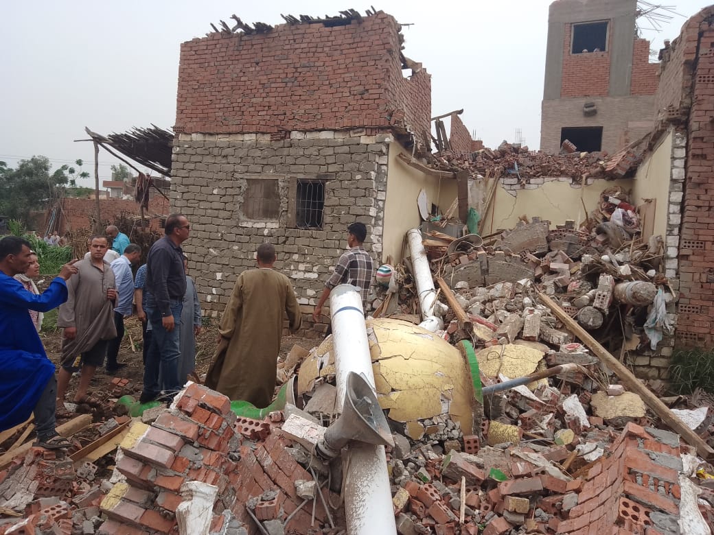 سقوط مئذنة مسجد بسبب سوء الأحوال الجوية بالقليوبية