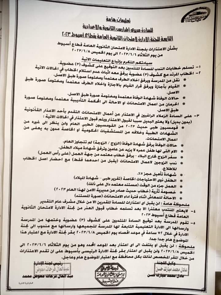 تعليمات تسليم خطابات الندب لامتحانات الثانوية العامة 2023