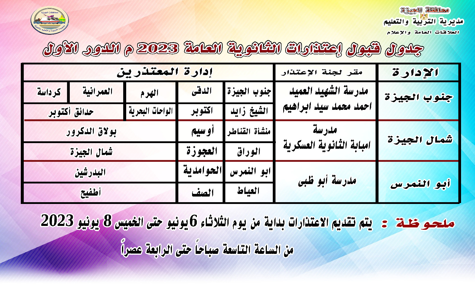 مقار اعتذارات الثانوية العامة 2023 لمحافظة الجيزة