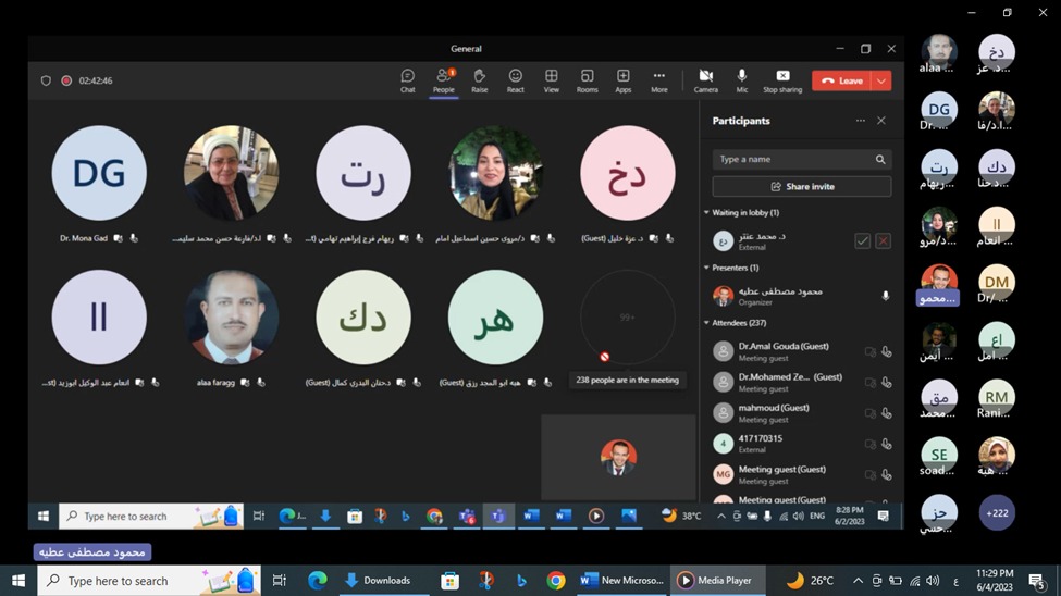 تحت إشراف الدكتور فارعة حسن أستاذ المناهج وطرق التدريس بالكلية والمشرف على نادي اليونسكو بالكلية، قام بها الدكتور محمود عطية الأستاذ المساعد بقسم المناهج وطرق التدريس بالكلية، وذلك عبر تطبيق مايكروسوفت تيمز في حضور كثيف من أعضاء هيئة التدريس بالجامعات المصرية، وكذلك المعلمين من كافة أنحاء الجمهورية، وأعضاء نادي اليونسكو من كافة محافظات الجمهورية.