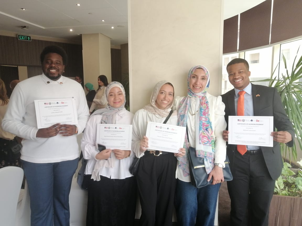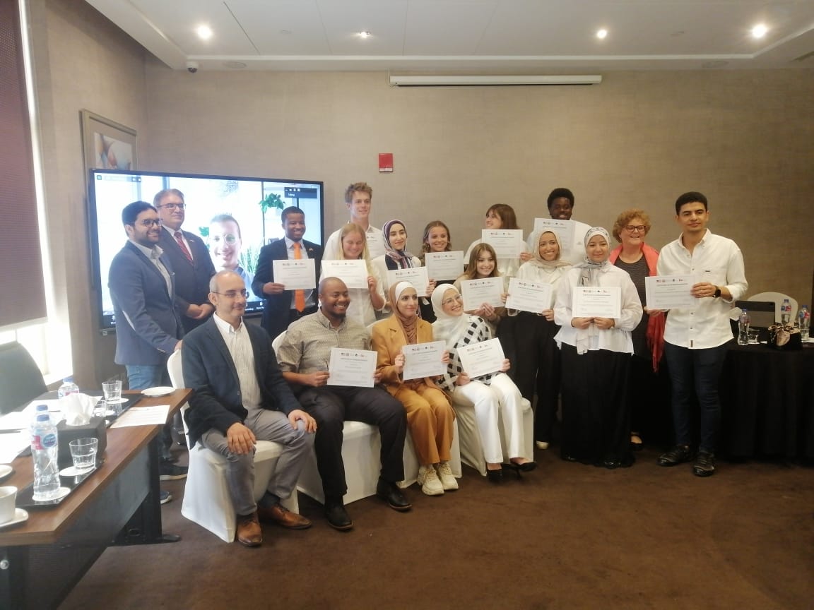 واختتمت فعاليات اللقاء بتوزيع شهادات تخرج الطلاب من برنامج هايفر الممول من الحكومة الأمريكية والاحتفال مع الطلاب بصورة توثيقية لهم مع الطلاب الأمريكيين وممثلي السفارة الأمريكية.