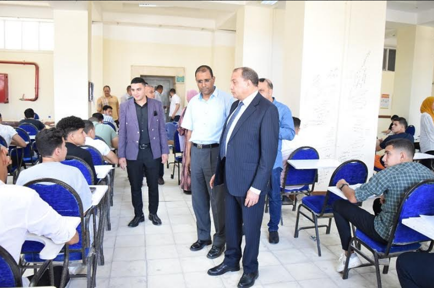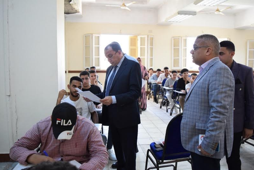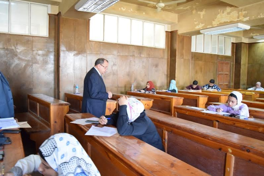 رئيس جامعة بني سويف يتفقد أعمال امتحانات الترم الثاني بكلية التجارة