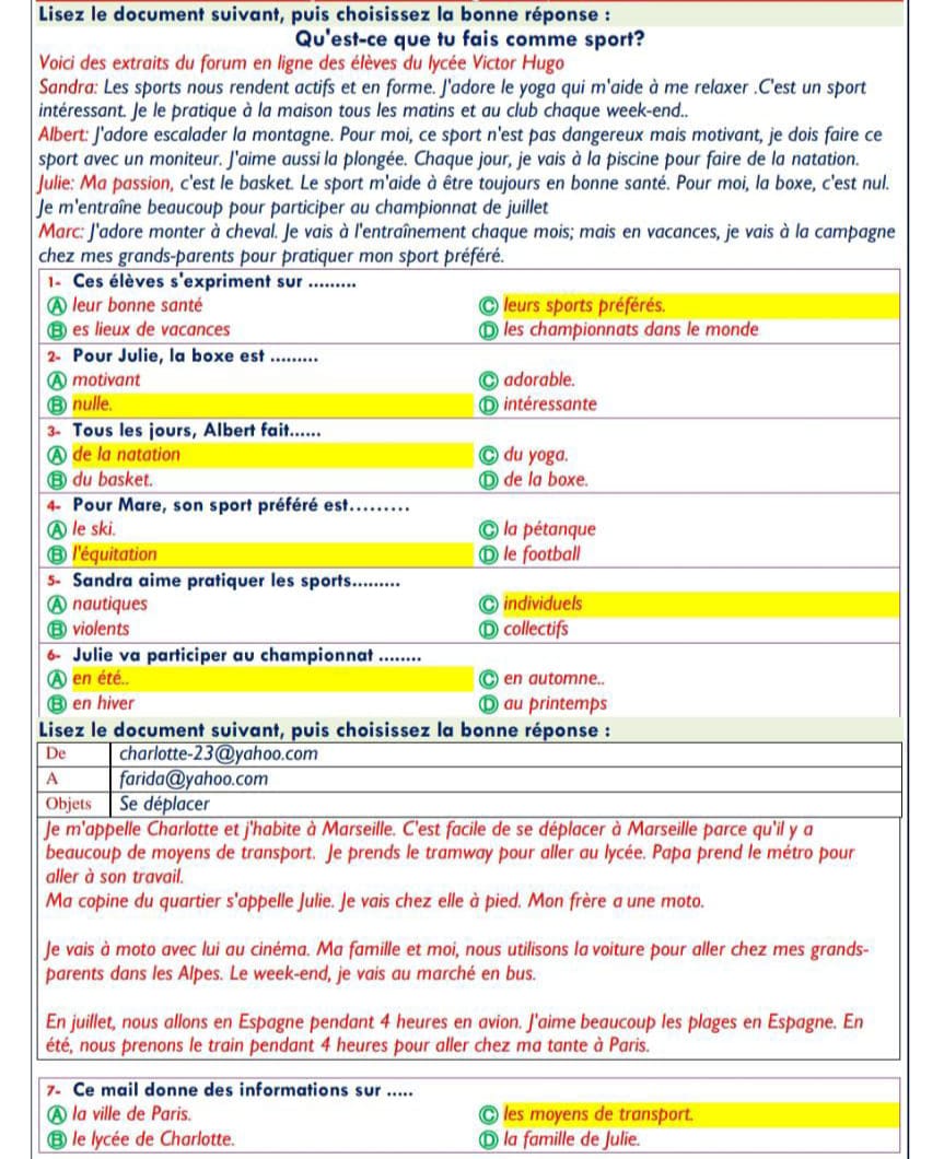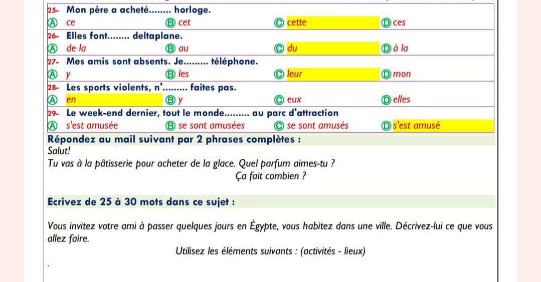 نشر عدد من المعلمين، وعلى رأسهم عبدالله سعد رئيس قسم اللغة الفرنسية بمدرسة السعيدية، نموذج إجابة امتحان اللغة الفرنسية الذي أداها طلاب الثانوية العامة اليوم الثلاثاء ضمن امتحان اللغة الأجنبية الثانية.