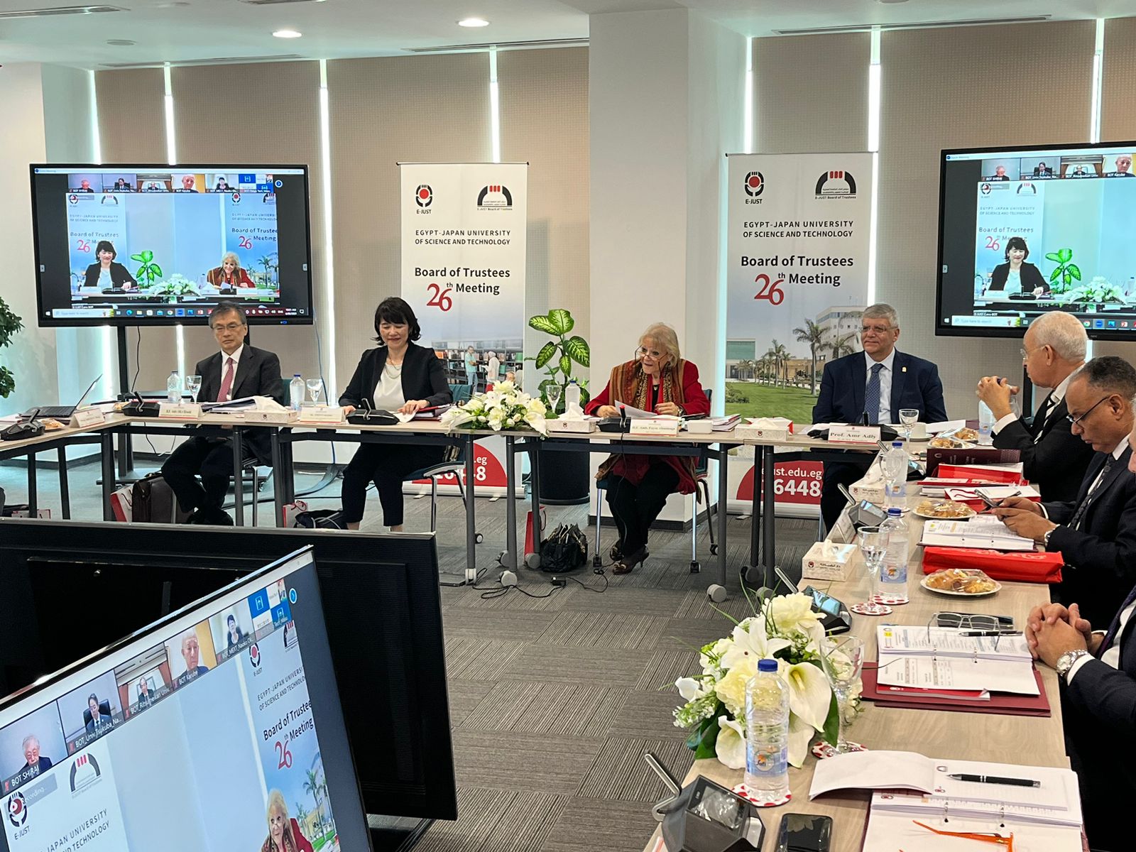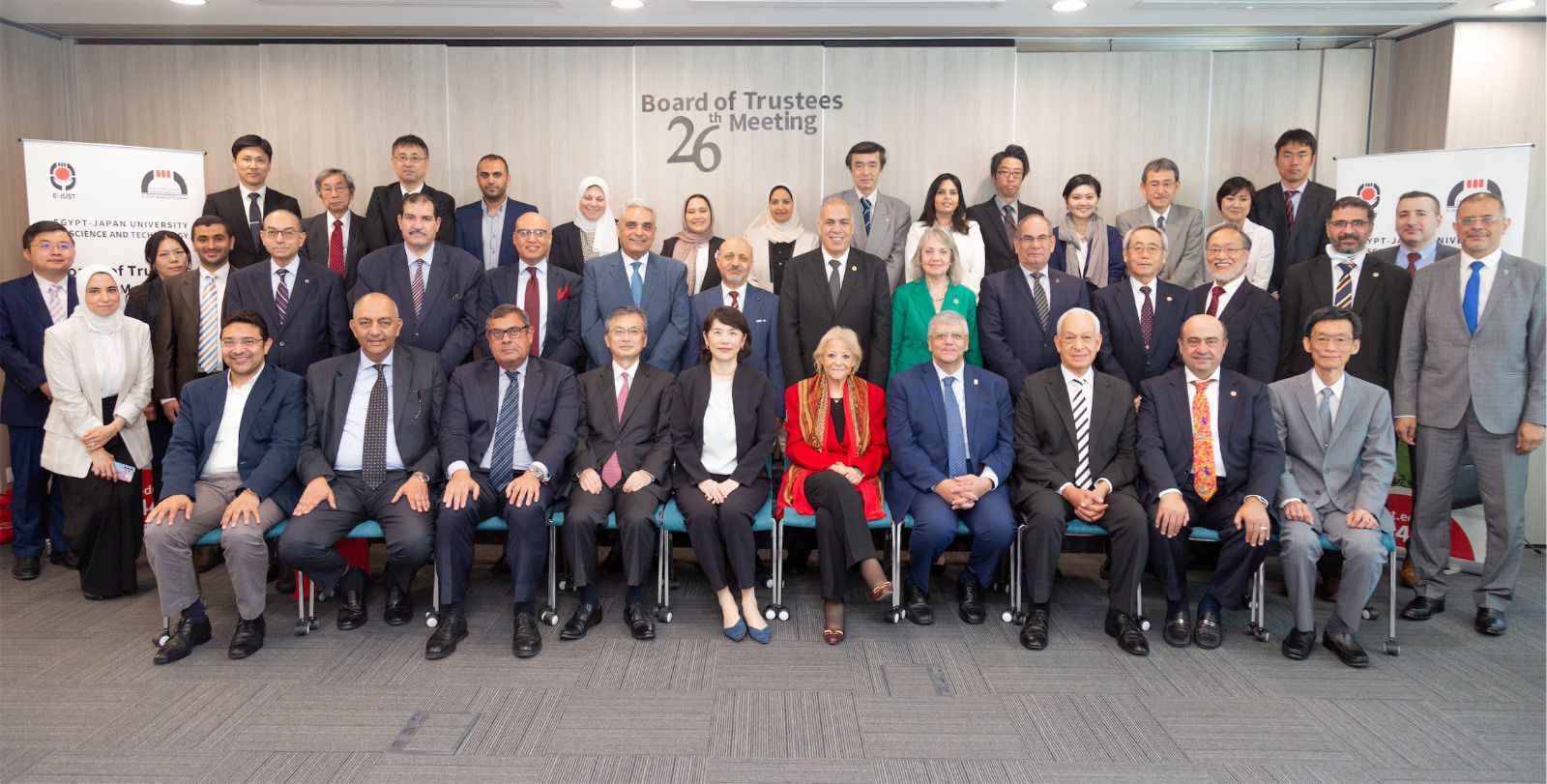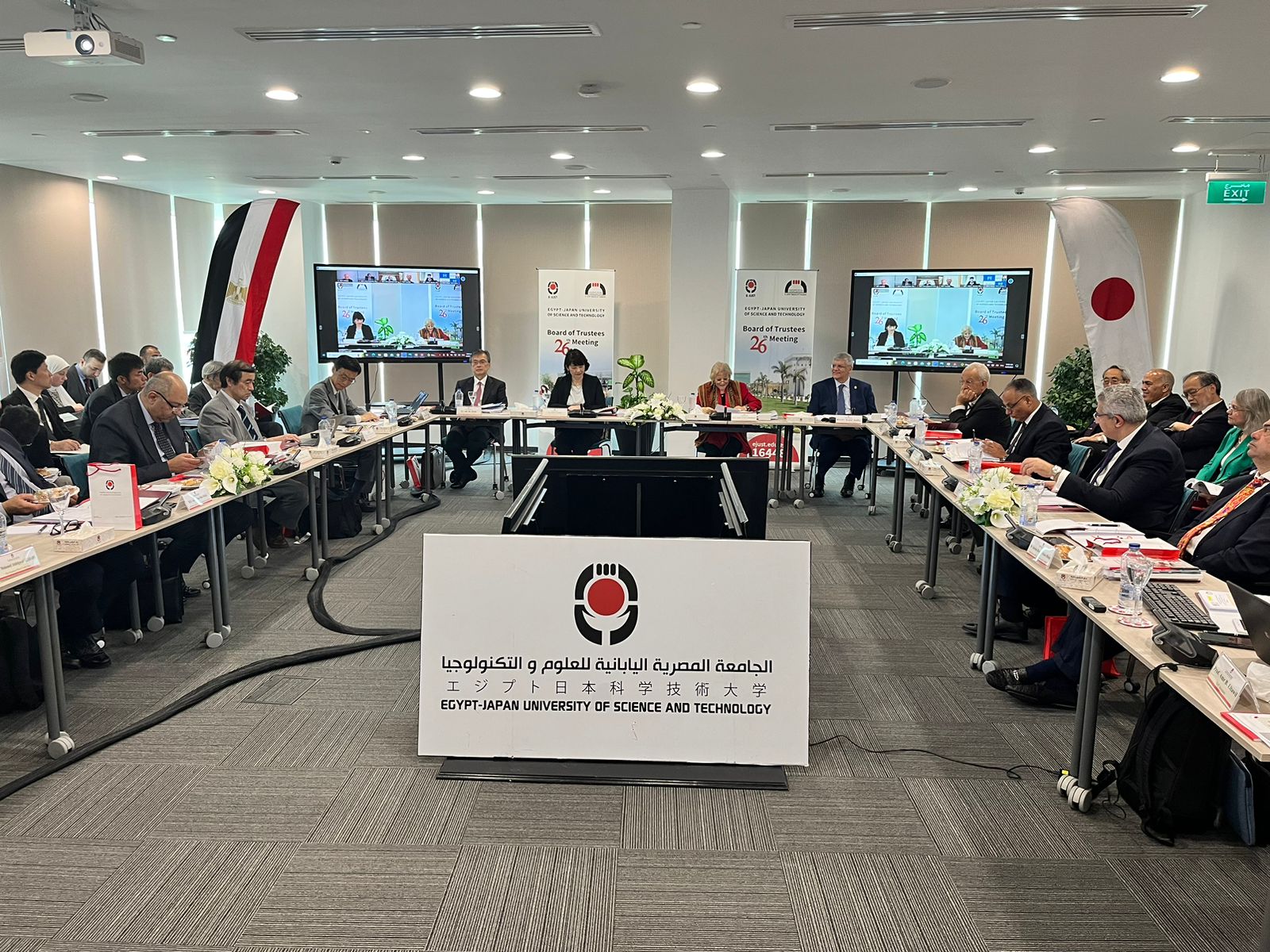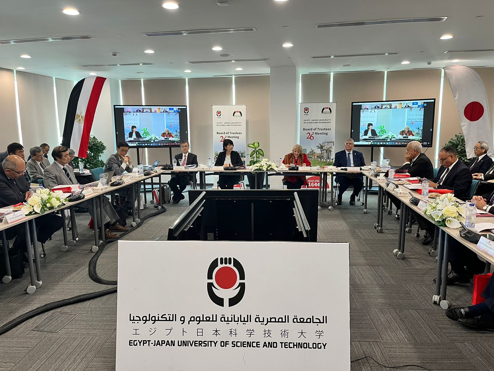 شاركت ايموتو ساتشيكو النائب الأول لرئيس وكالة التعاون الدولي الياباني «جايكا»، في اجتماع مجلس أمناء الجامعة المصرية اليابانية للعلوم والتكنولوجيا في دورته الـ٢٦، والذي عقد بالقرية الذكية برئاسة السفيرة فايزة أبو النجا وزيرة التعاون الدولي الأسبق ومستشار رئيس الجمهورية للأمن القومي، بحضور الدكتور عمرو عدلي رئيس الجامعة المصرية اليابانية للعلوم والتكنولوجيا، والسفير الياباني أوكا هيروشي، والدكتور ماساكي سوزوكي نائب رئيس الجامعة لشئون العلاقات الإقليمية والدولية، والدكتور سامح ندا نائب رئيس الجامعة للتعليم والشئون الأكاديمية، والدكتور توشيو فوكودا نائب رئيس الجامعة للبحث العلمي، وأعضاء مجلس الأمناء من الجانبين المصري والياباني وعمداء الكليات والمراكز بالجامعة.
