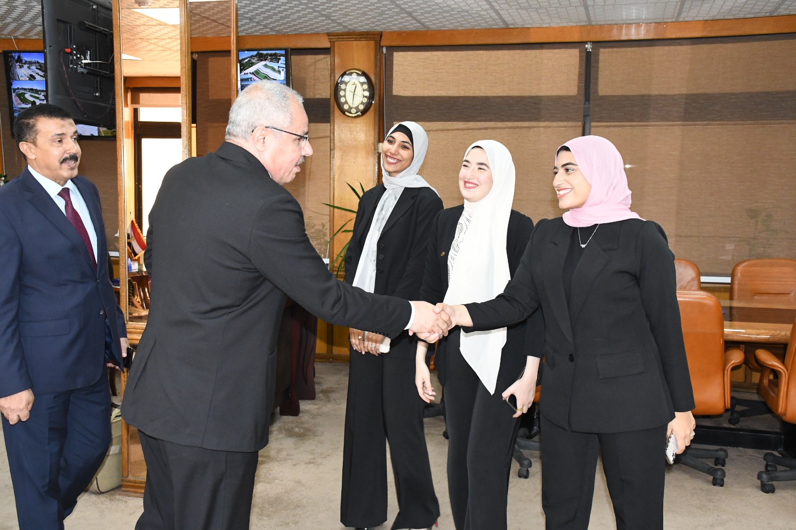 كذلك استقبل الدكتور محمد عبد النعيم نائب رئيس الجامعة لشئون التعليم والطلاب، الطالبات، مقدمًا التهنئة لهن، موضحًا الدور المنوط بكل منهن، سواء على مستوى البحث العلمي، أو في الحياة المهنية.