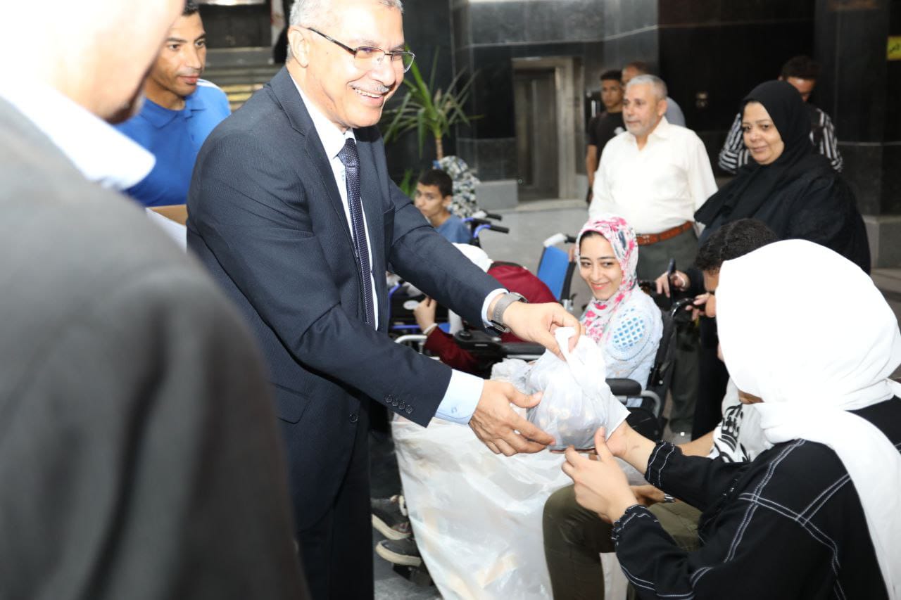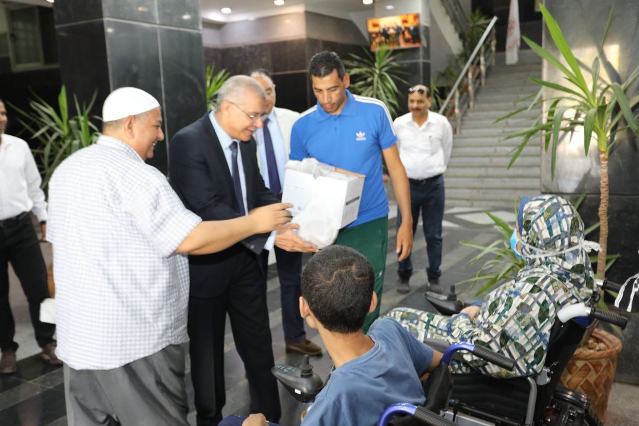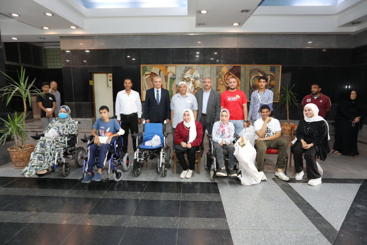 رئيس جامعة الزقازيق يسلم كراسى متحركة وأطراف صناعية لطلاب من ذوي الهمم