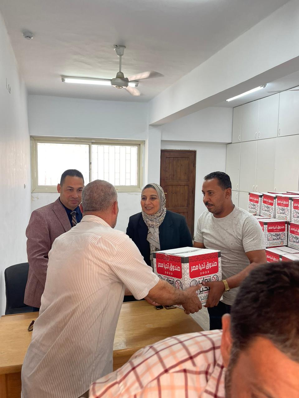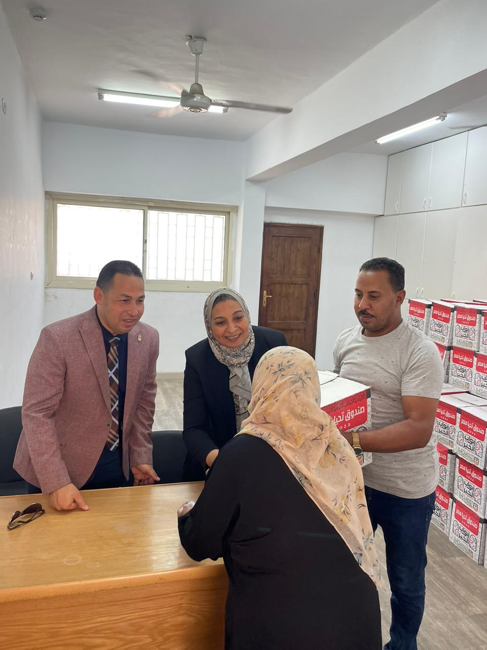 قامت الدكتورة غادة فاروق نائب رئيس جامعة عين شمس لشئون المجتمع وتنمية البيئة، يرافقها إبراهيم سعيد حمزة أمين الجامعة المساعد لشئون خدمة المجتمع وتنمية البيئة، بتوزيع ١٠٠٠ كرتونة - مهداه من صندوق تحيا مصر - تحتوى على السلع الغذائية الأساسية على عمال الجامعة احتفالا بقدوم عيد الأضحى المبارك، وذلك في إطار التعاون المثمر بين جامعة عين شمس وصندوق تحيا مصر واستكمالًا لمبادرة دكان الفرحة، بمقر التوزيع بالمدينة الجامعية طلبة.