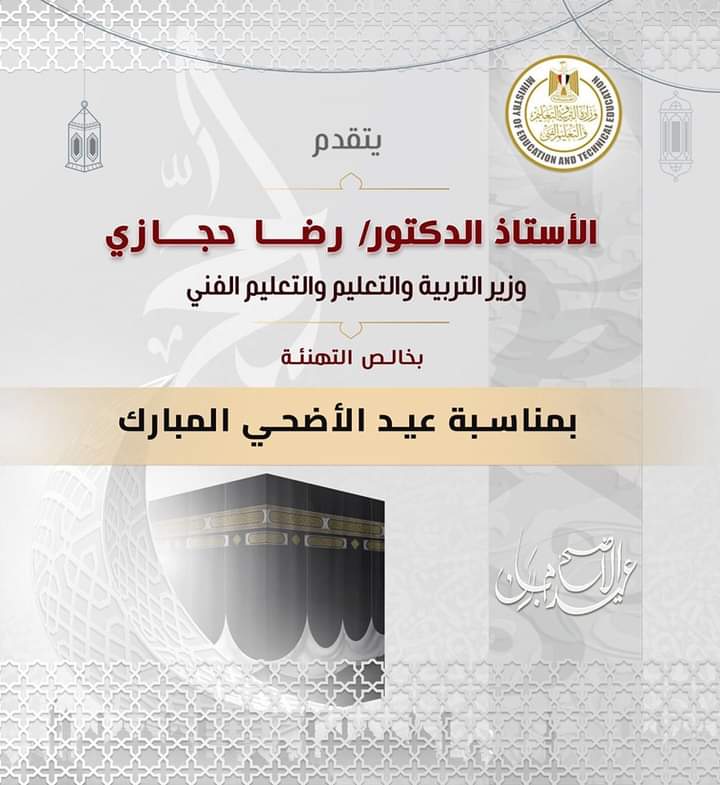 تقدم الدكتور رضا حجازي وزير التربية والتعليم والتعليم الفني بخالص التهنئة لجموع العاملين بالوزارة والمعلمين وزملائه وأبنائه الطلاب، بمناسبة حلول عيد الأضحى المبارك.