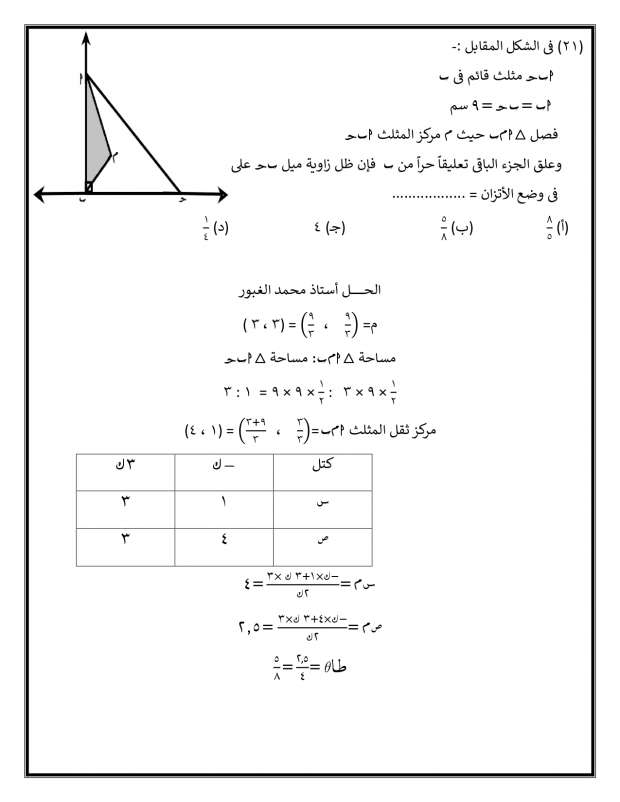 ونشر عدد من المعلمين أبرز الأسئلة المتوقعة في المادة عندما نشروا المراجعة النهائية في الاستاتيكا للثانوية العامة 2023 بعد زيادة عمليات البحث عنها من قبل الطلاب قبيل ساعات من فتح اللجان أمام الطلاب غدا الثلاثاء.