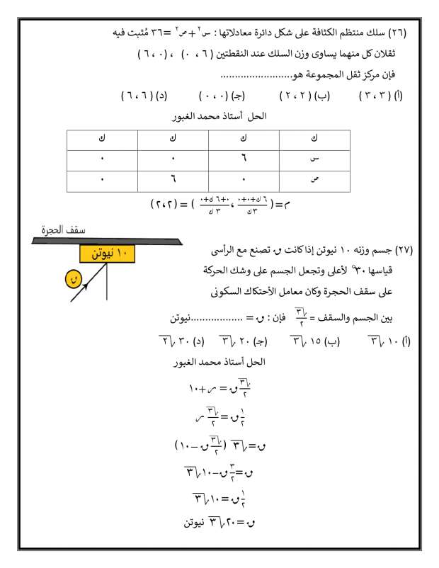 المراجعة النهائية في الاستاتيكا للثانوية العامة 2023