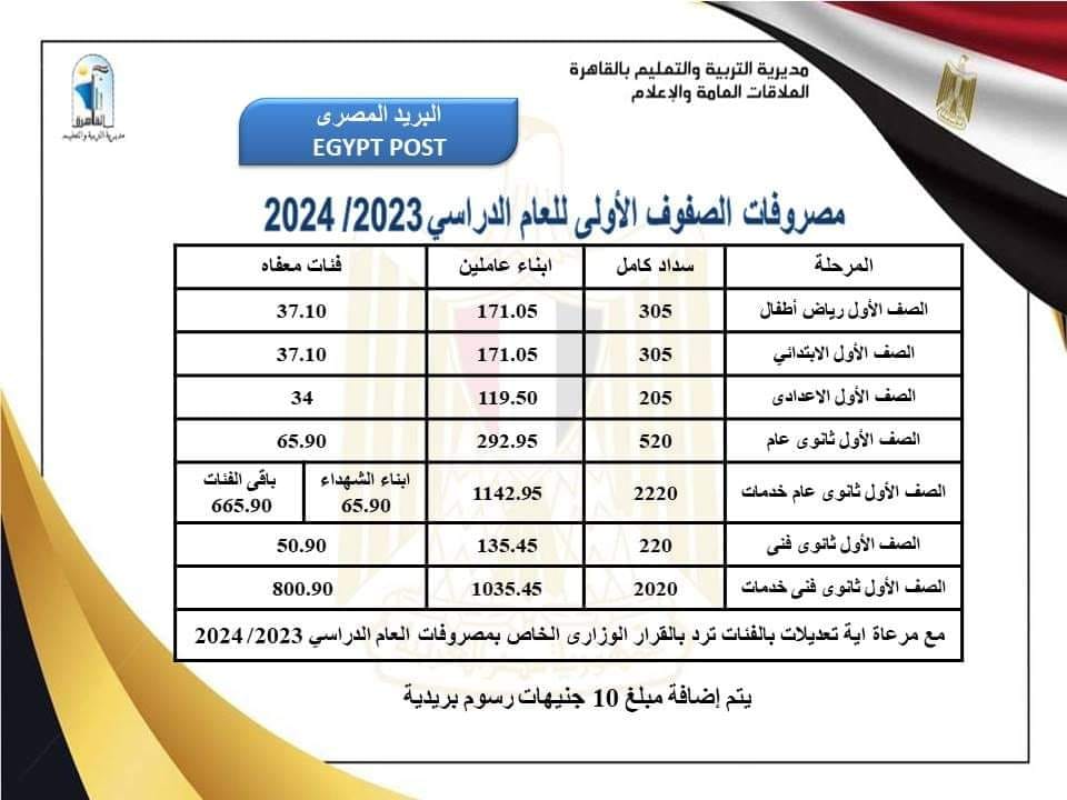 وجاءت مصروفات الصفوف الأولى للعام الدراسي 2023/2024 كالآتي: