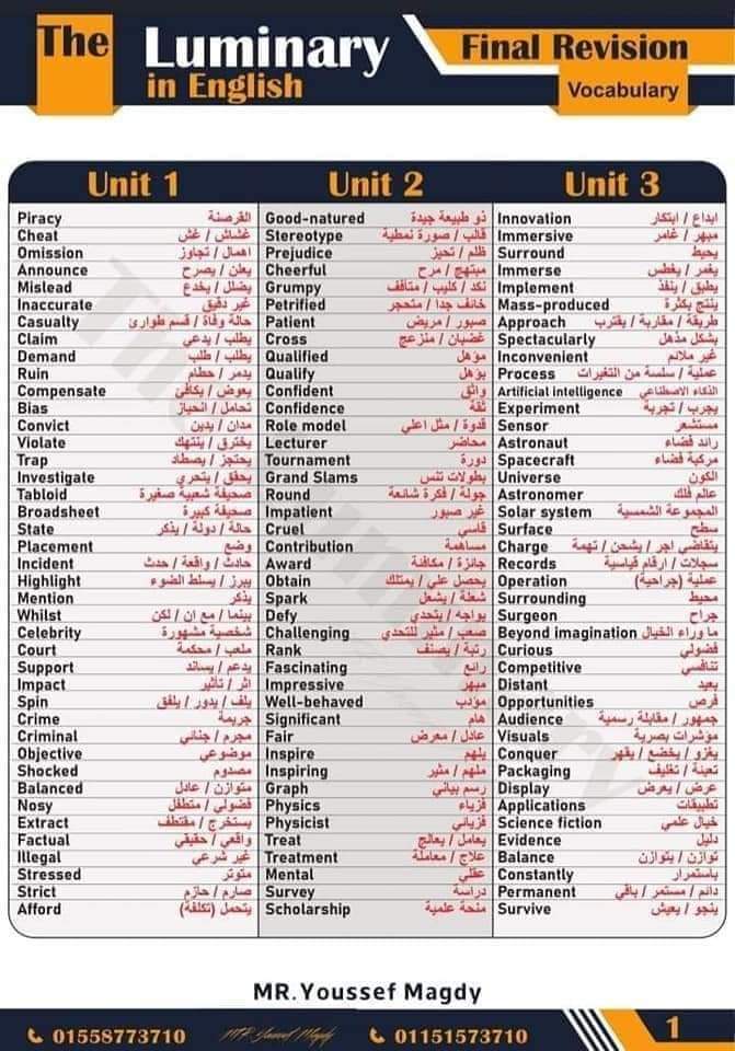 عاجل.. أهم كلمات منهج اللغة الإنجليزية قبل امتحان الخميس لطلاب الثانوية 2023