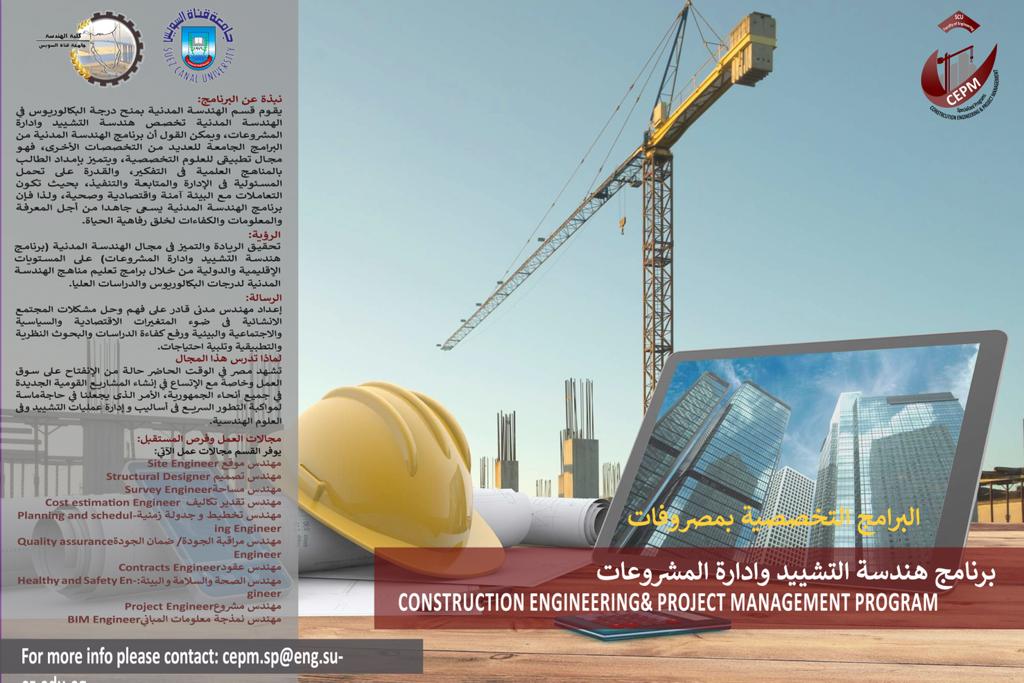 بينما أوضح الدكتور باسم الهادي السعيد وكيل كلية الهندسة، طبيعة برنامج هندسة التشييد وإدارة المشروعات، الذي جاء تلبية لما تشهده مصر في الآونة الأخيرة من انفتاح على سوق العمل، وخاصة مع الاتساع في إنشاء المشاريع القومية الجديدة في جميع أنحاء الجمهورية، الأمر الذي يجعلنا في حاجة ماسة إلى وجود مهندسين في التخصصات التي تحتاجها الأسواق الداخلية والخارجية، وتعتبر الهندسة المدنية من العلوم الهندسية التطبيقية المطلوبة في جميع المجتمعات لتحقيق متطلبات التعمير والتطوير، هذا وتشهد الهندسة المدنية تقدمًا كبيرًا؛ نتيجة للتطور السريع في أساليب وإدارة عمليات التشييد، وفي العلوم الهندسية الإنشائية وتكنولوجيا البناء، ويقوم قسم الهندسة المدنية بمنح درجة البكالوريوس في الهندسة المدنية تخصص هندسة التشييد وإدارة المشروعات.