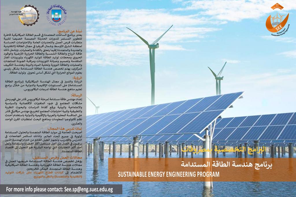 أما عن برنامج هندسة الطاقة المستدامة بنظام الساعات المعتمدة في قسم الطاقة الميكانيكية، فهو قاطرة للتطوير المستمر للدورات الحديثة المصممة خصيصًا لتلبية متطلبات فرص العمل والتحديات العامة والاحتياجات الحساسة لمنطقة الشرق الأوسط وشمال أفريقيا في مجال الطاقة (التقليدية والجديدة والمتجددة) فيما يتعلق بالكفاءة والعمليات، ويشمل ذلك طاقة الرياح والطاقة الشمسية والطاقة الحرارية الأرضية والوقوف الحيوي ومحطات توليد الكهرباء، وتوربينات الغاز المتقدمة، وتصميم وصيانة التوربينات، ومراقبة الجودة للمنتجات والعمليات والطاقة النووية وتحلية المياة والبيئة، وهندسة التكييف المركزي، ويهتم تخصص هندسة الطاقة المستدامة بشكل رئيس بعلوم الموانع الحرارية التي تشكل أساس تحويل وتوليد الطاقة.