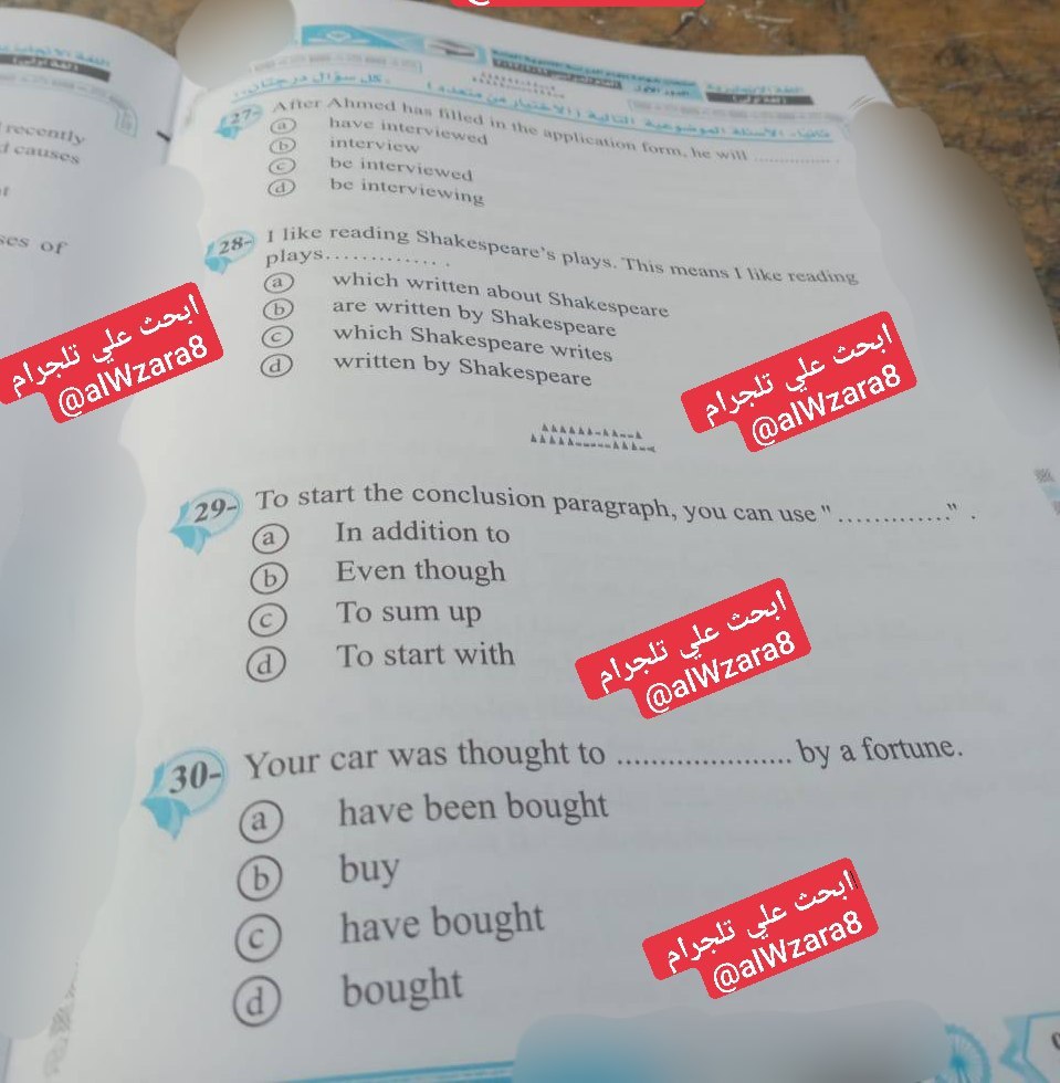 تداول امتحان اللغة الإنجليزية للثانوية العامة 2023 على تليجرام «صور»
