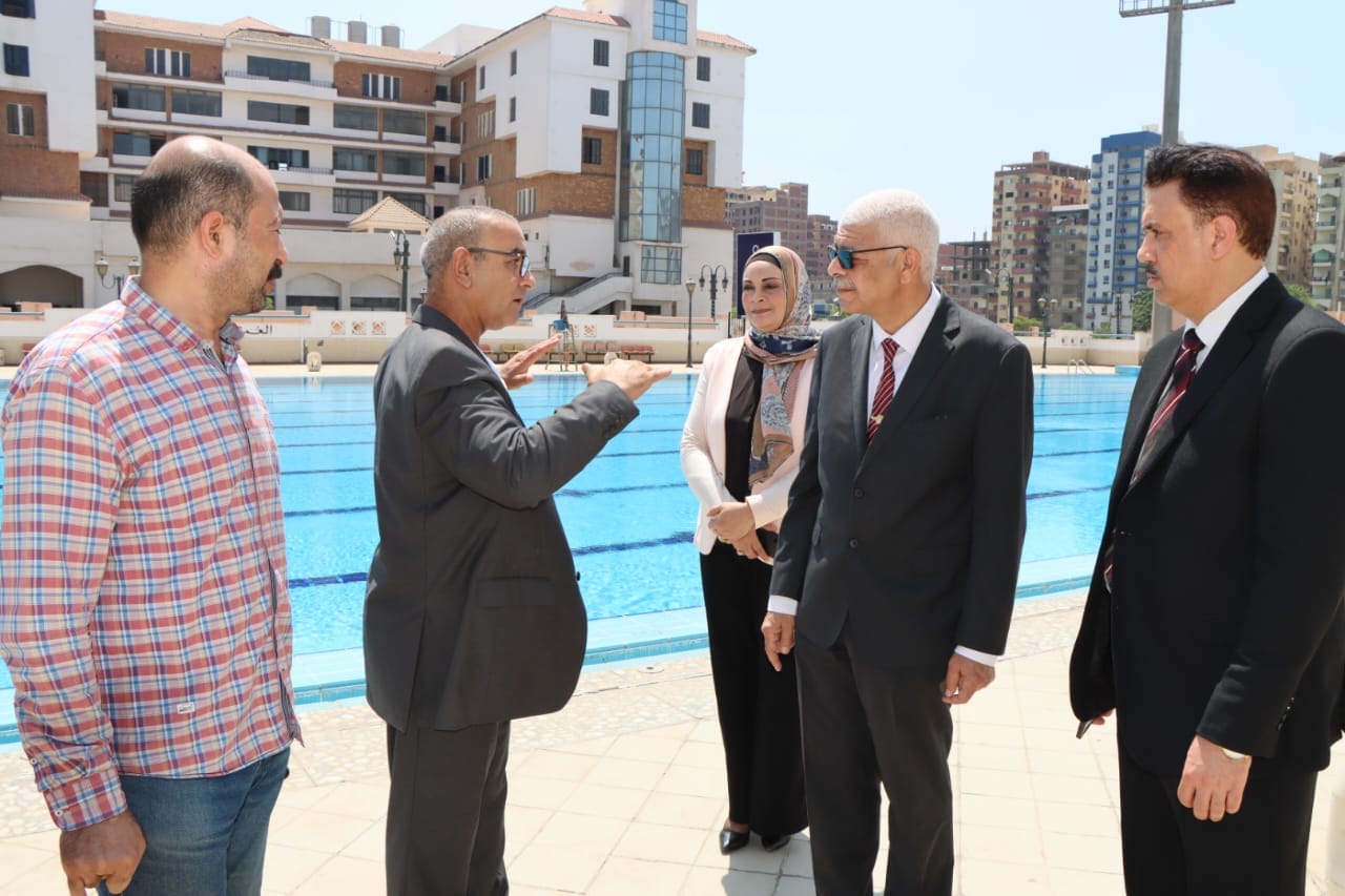 رئيس جامعة المنوفية يتفقد سير العمل بمجمع الرياضات المائية