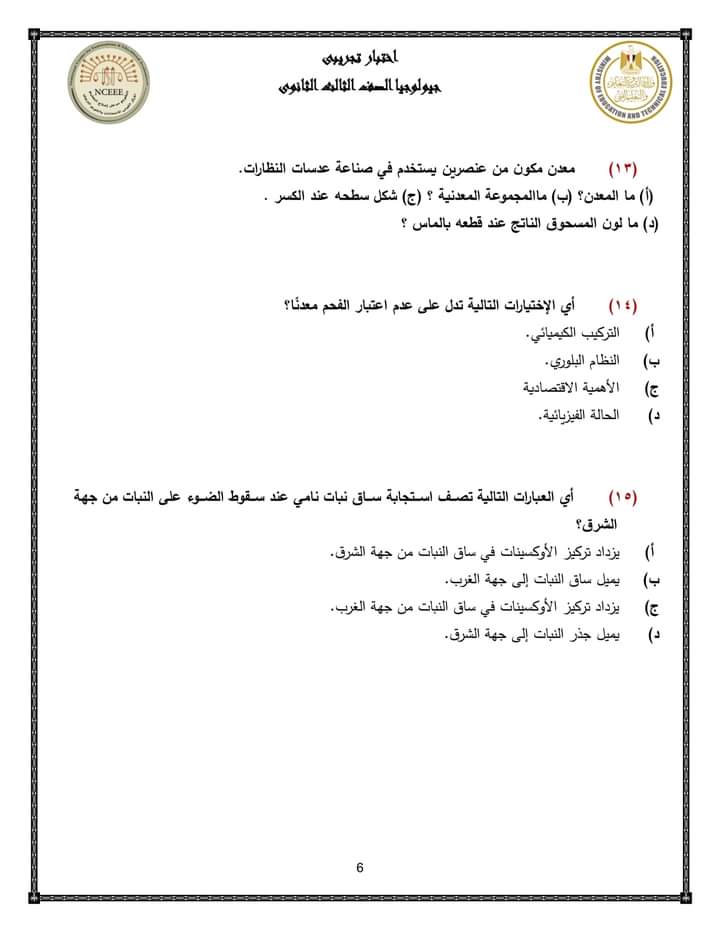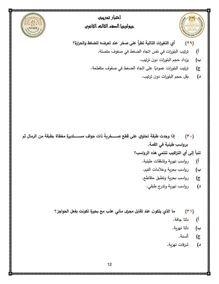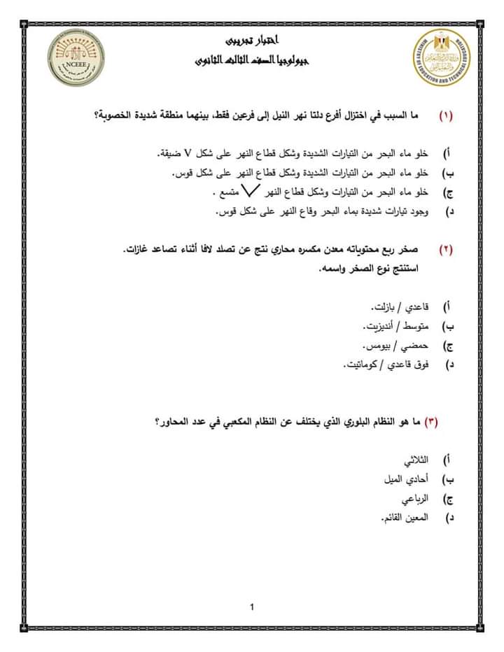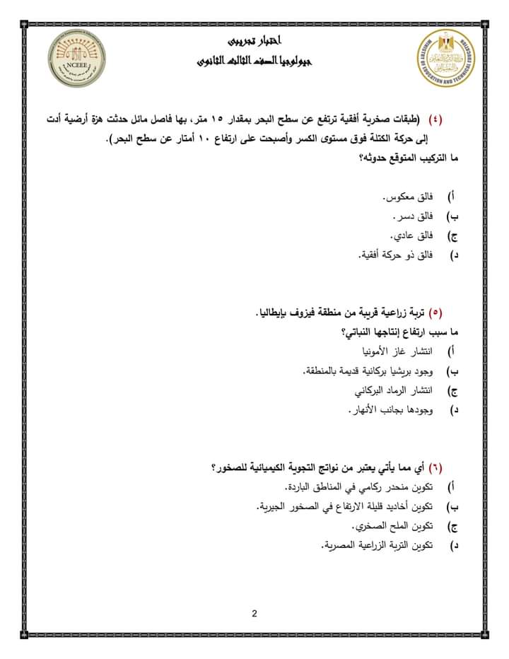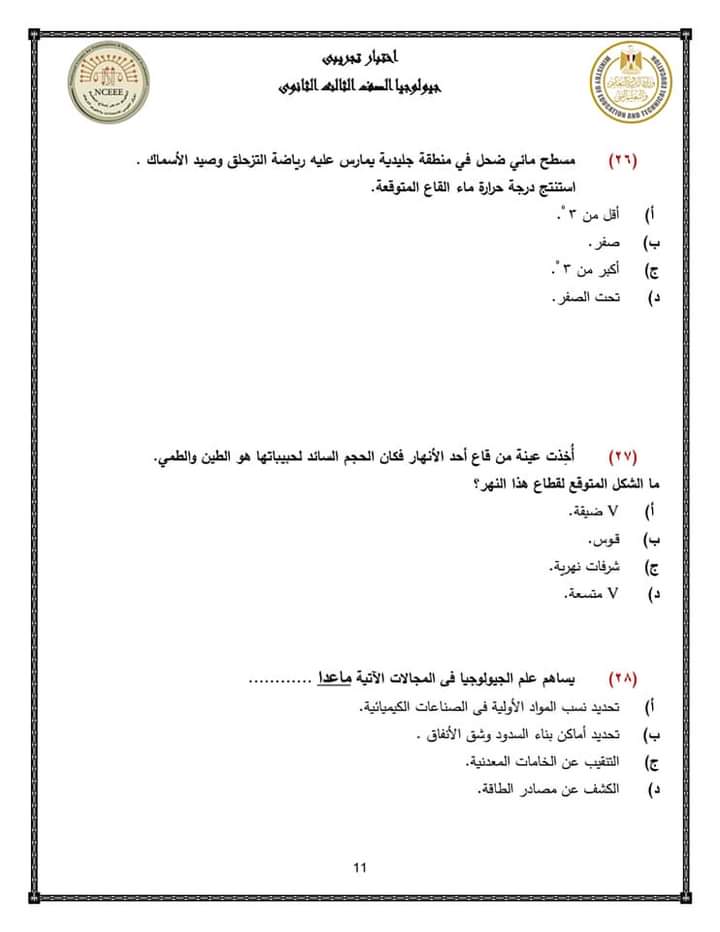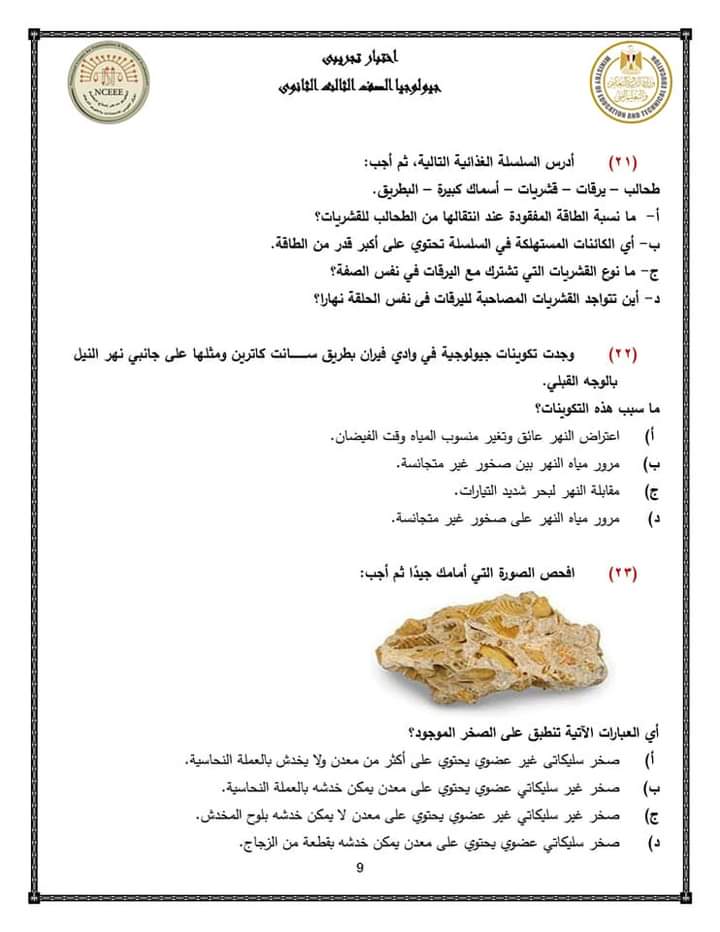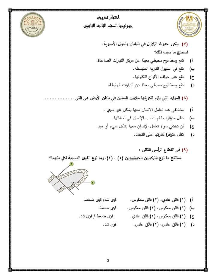 امتحان مادة جيولوجيا تالتة ثانوي 2023