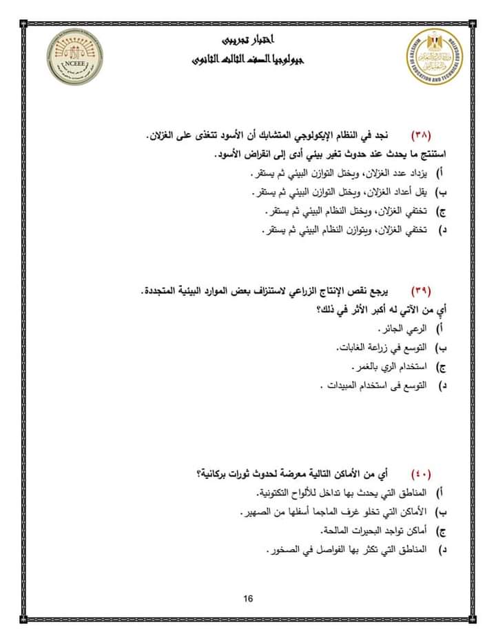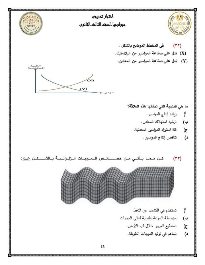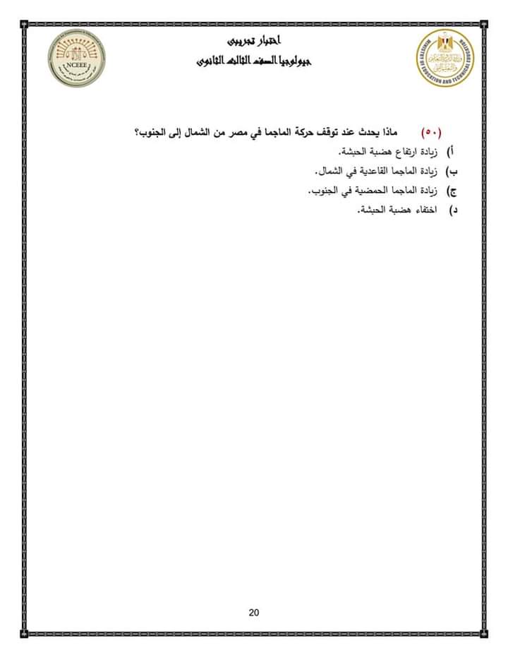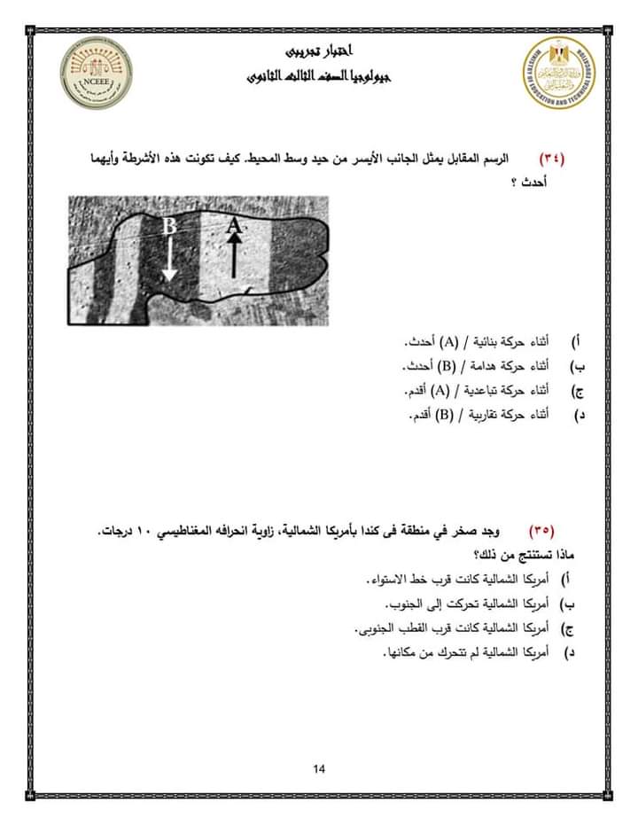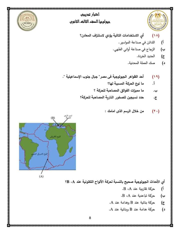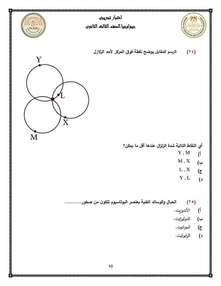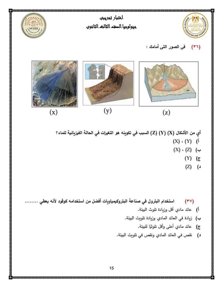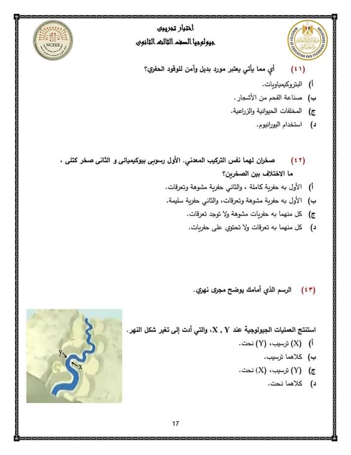 امتحان مادة جيولوجيا تالتة ثانوي 2023