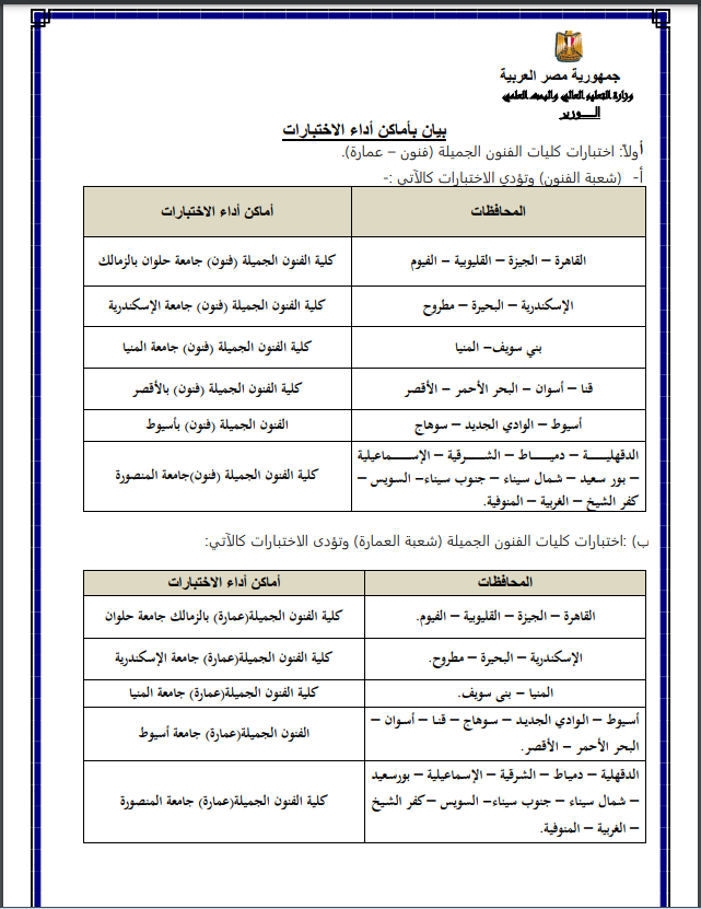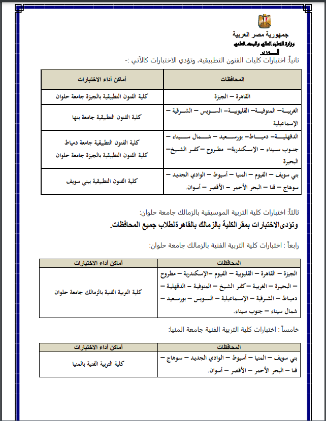 - تلتزم الكليات المعنية بعقد امتحانات القدرات في المواعيد المحددة.