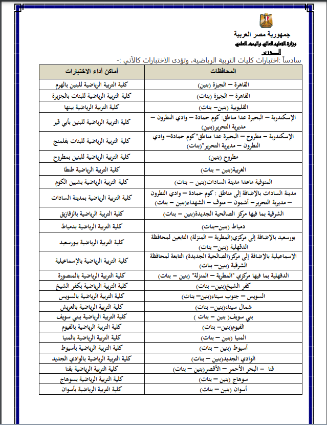 6- كليات التربية الرياضية.
