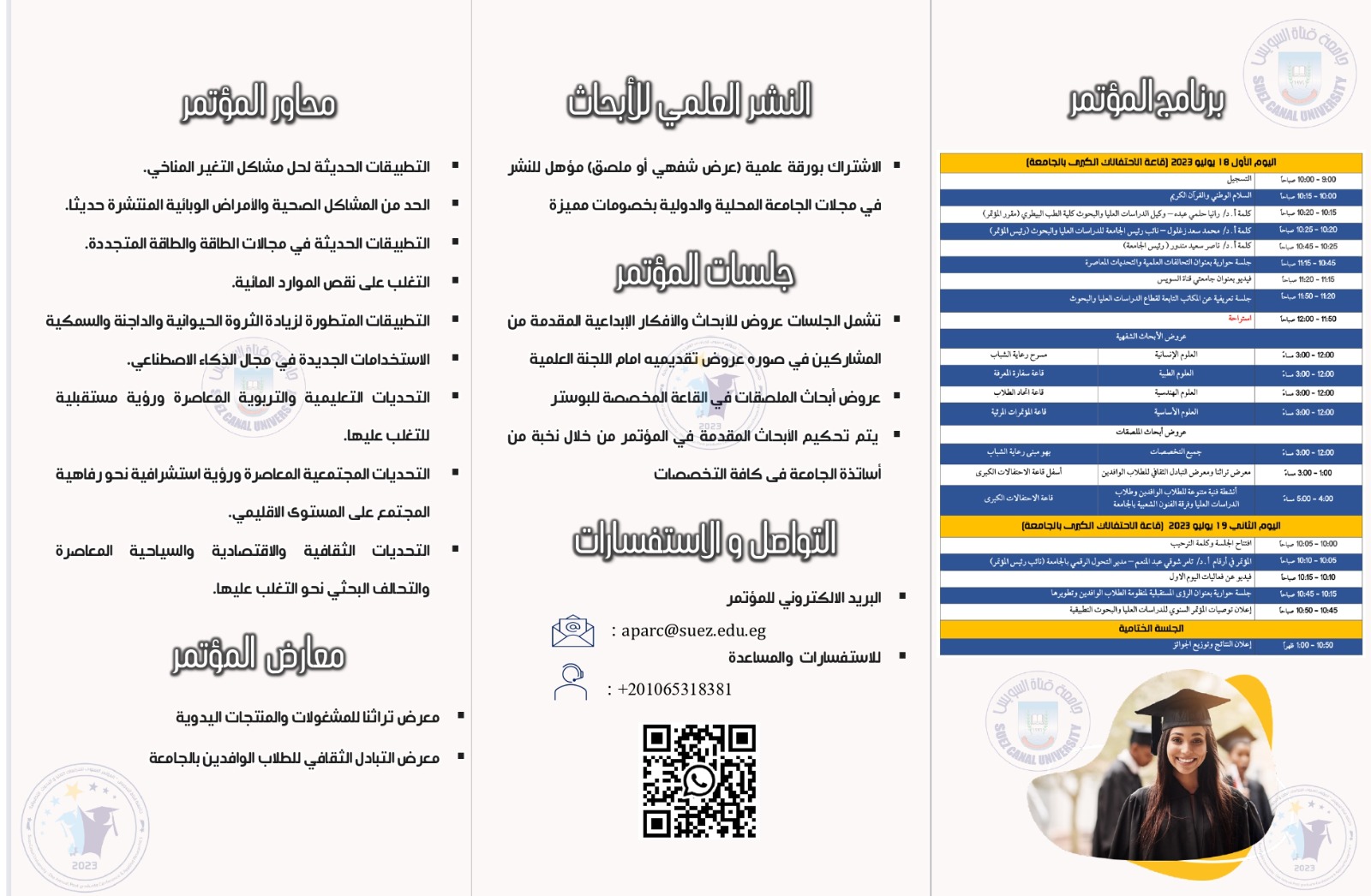 جامعة قناة السويس تنظم المؤتمر السنوي للدراسات العليا والبحوث التطبيقية
