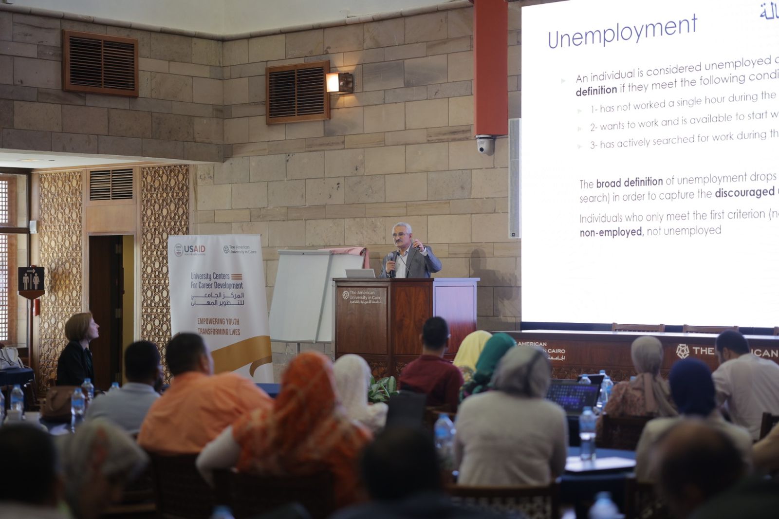 نظم مشروع المراكز الجامعية للتطوير المهني، فاعليات الملتقى التدريبي الأول لمعلومات سوق العمل بدعم من الوكالة الأمريكية للتنمية الدولية والذي تنفذه الجامعة الأمريكية بالقاهرة، ويستمر من 13 - 20 يوليو الجاري بالجامعة الأمريكية بالقاهرة، والذي افتتحه الدكتور أيمن فريد مساعد وزير التعليم العالي والبحث العلمي للتخطيط الاستراتيجي والتدريب والتأهيل لسوق العمل، وبحضور نادر أيوب القائم بأعمال مدير مكتب التعليم والصحة بالوكالة الأمريكية للتنمية الدولية، برعاية الدكتور أيمن عاشور وزير التعليم العالي والبحث العلمي.