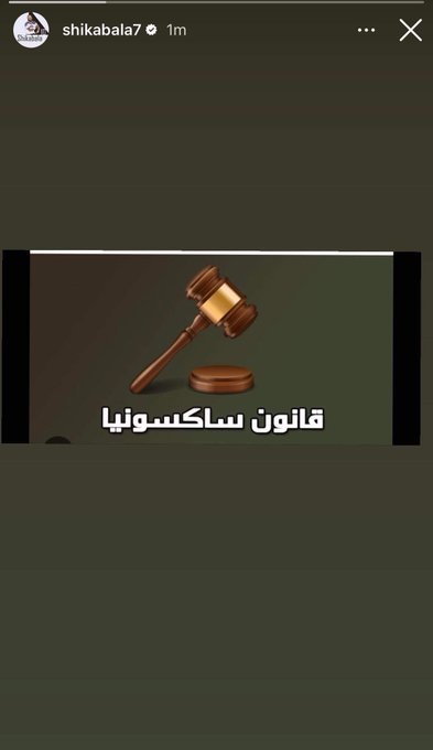 ونشر شيكابالا عبر حسابه الرسمي بموقع التواصل الاجتماعي "إنستجرام" صورة مكتوب عليها "قانون ساكسونيا"، وذلك بعد إعلان إيقاف حسين الشحات مباراتين.