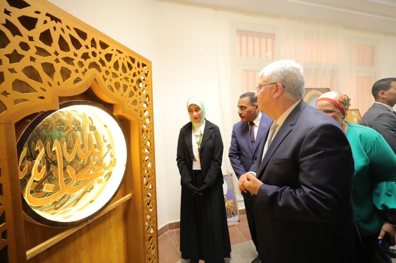 وزير التعليم العالي يتفقد معارض الفنون التشكيلية ومتحف الحضارات والفنون