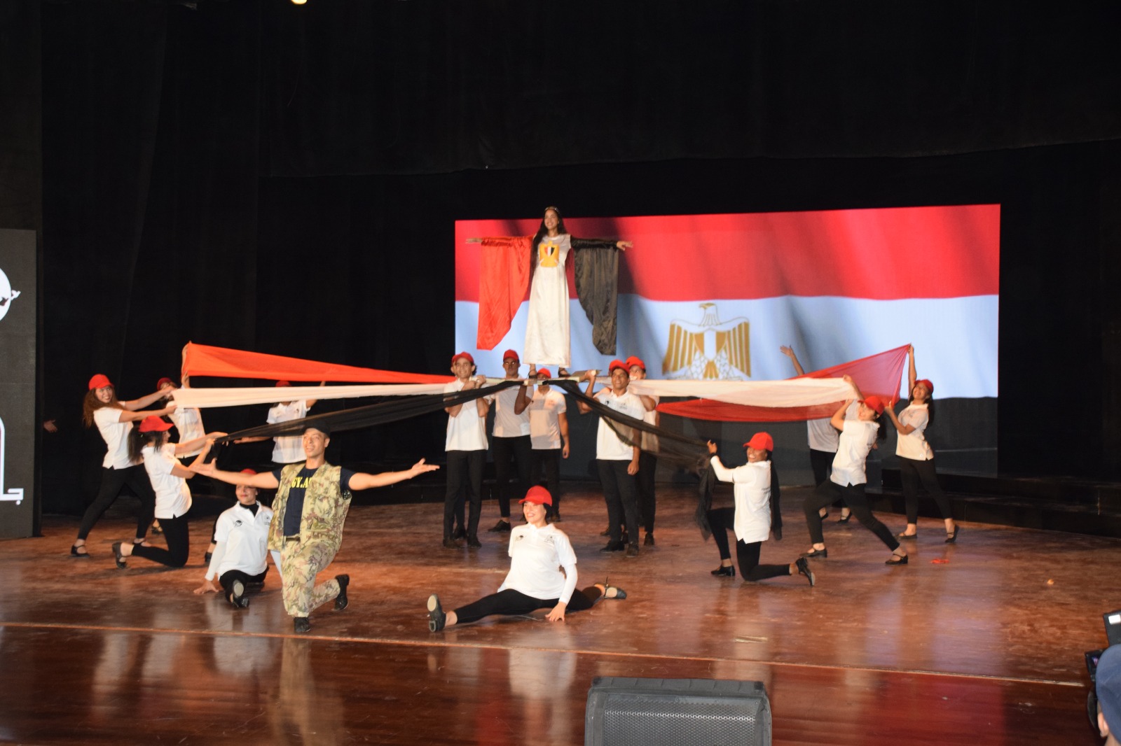 كذلك تم عرض فقرة فنون شعبية بعنوان "مصر أم الدنيا" تقديم طلاب كليتي التربية الرياضية بنين وبنات.