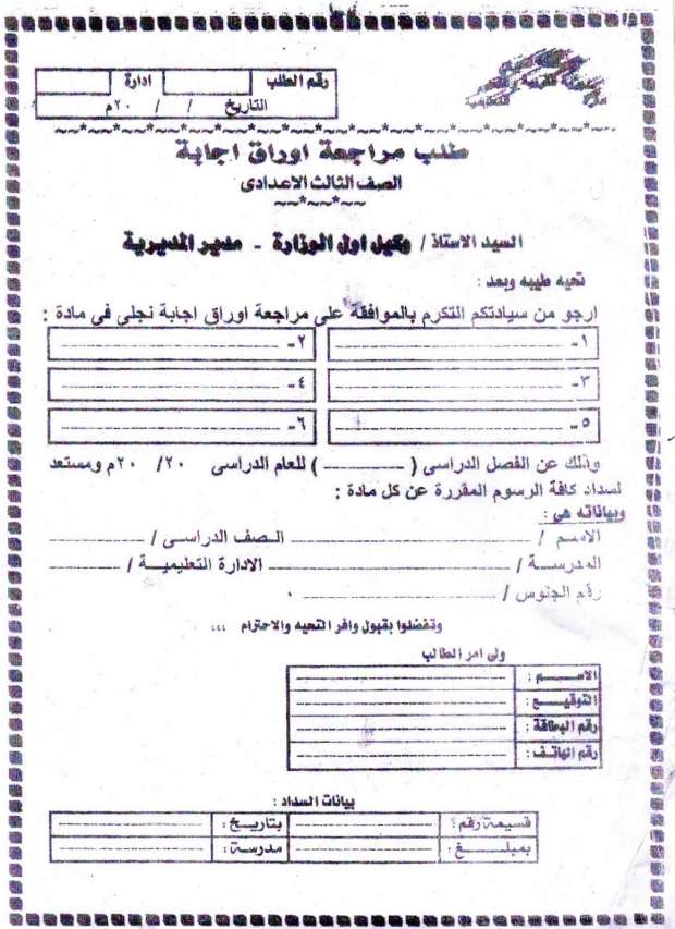 وقالت المديرية، في بيان، إن على ولي الأمر أن يقدم طلبا إلى مديرية التعليم بأسوان، حيث يحدد المادة أو المواد التي يرغب التظلم عليها، وسداد الرسوم المقررة وقيمتها 35 جنيهًا فقط للمادة الواحدة.