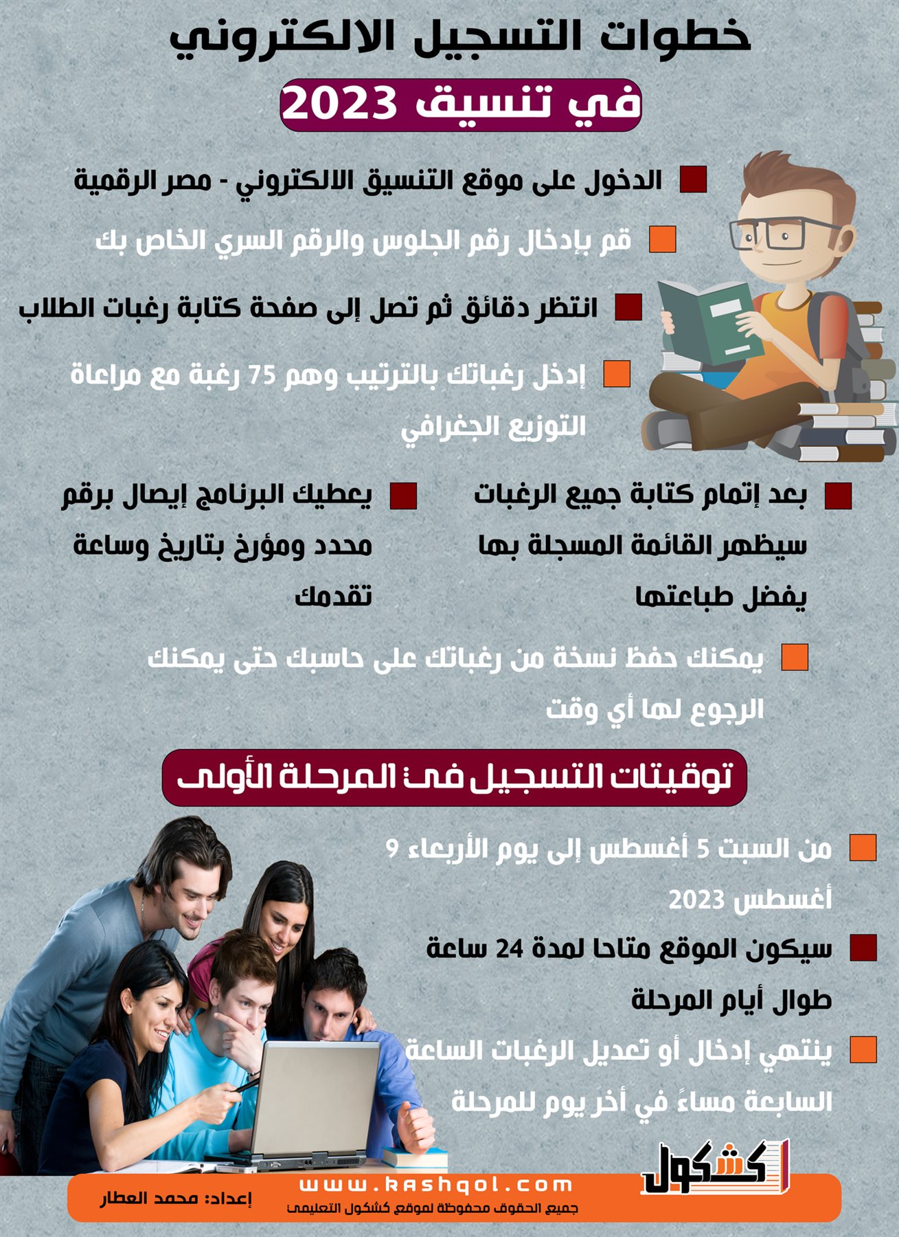 إنفوجراف| خطوات التسجيل الإلكتروني في تنسيق 2023
