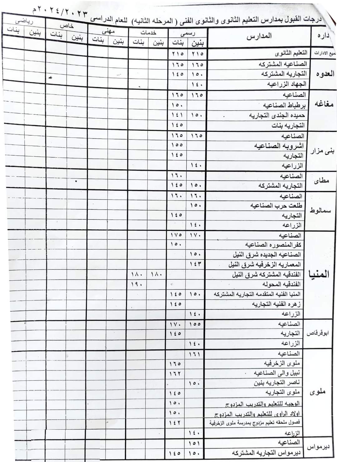 تخفيض تنسيق القبول بمدارس التعليم الثانوي العام والفني بالمنيا