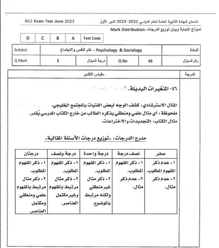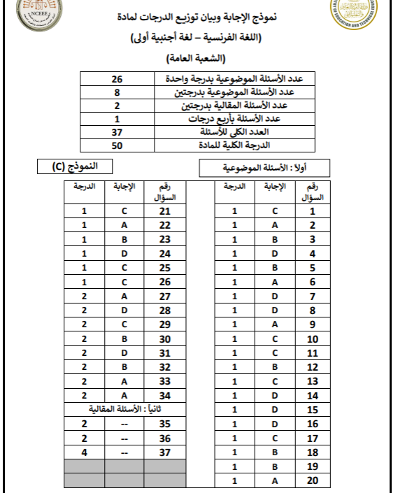 ويمكن الإطلاع على نماذج الإجابة عبر الرابط التالى: