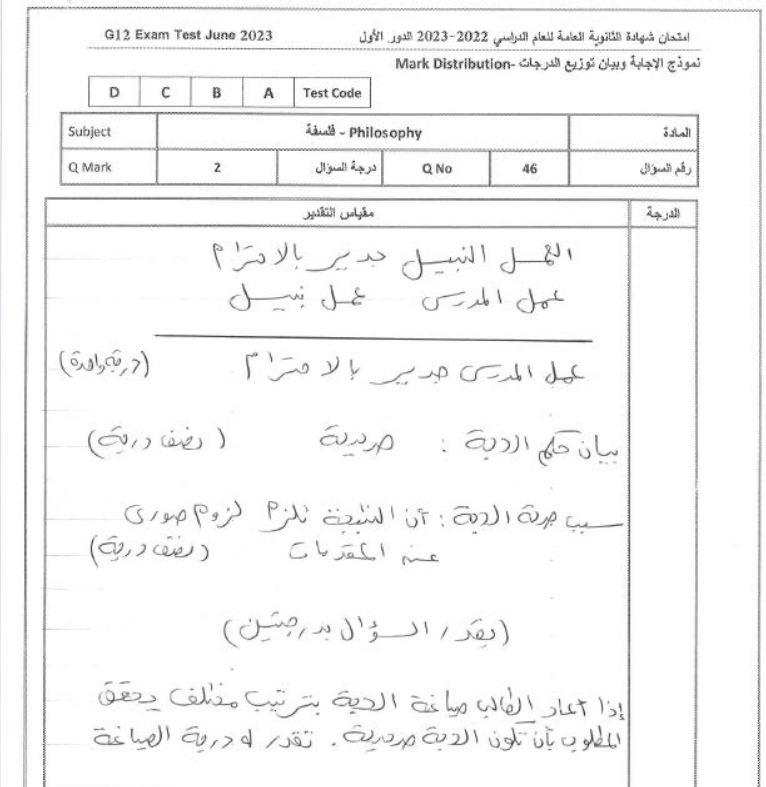 أتاحت وزارة التربية والتعليم والتعليم الفني، نموذج إجابات الأسئلة المقالية، لجميع مواد الثانوية العامة 2023 الشعبة الأدبية.
