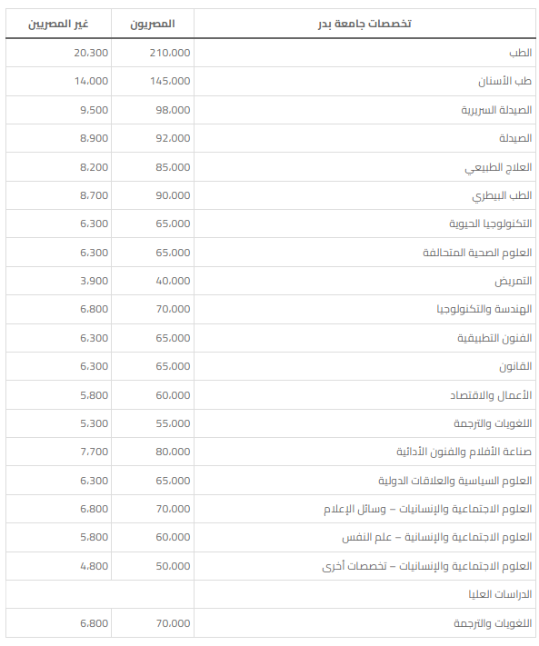 مصاريف جامعة بدر 2023.. تخصصات الجامعة